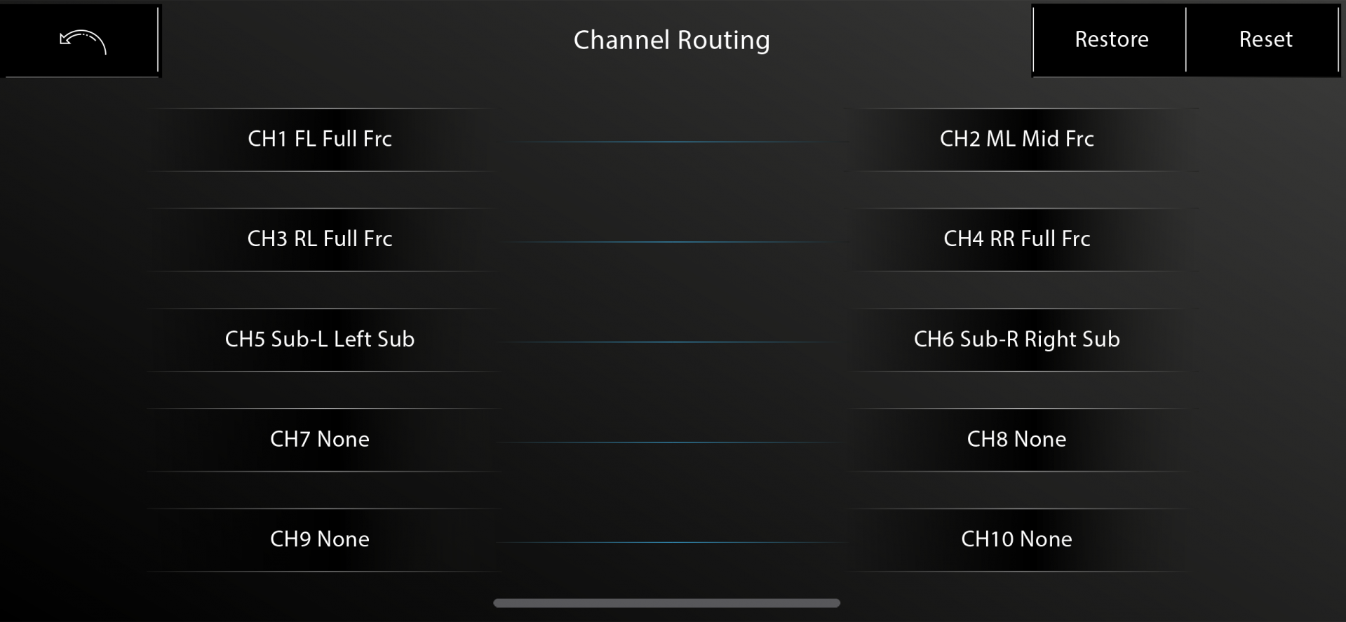 Počet line out DSP výstupů: 10 (CH 5 – CH 10)