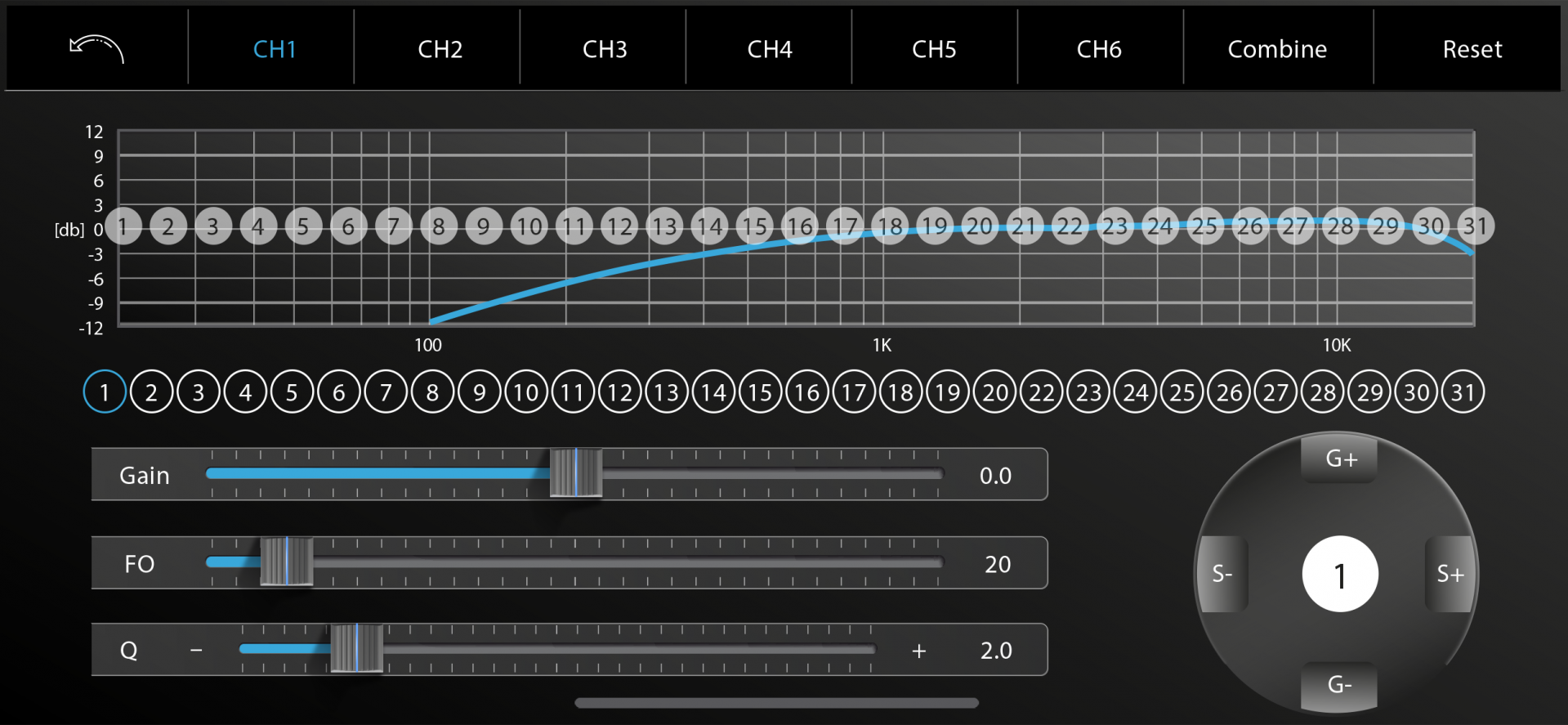 • Volně konfigurovatelný 31pásmový parametrický ekvalizér pro každý kanál