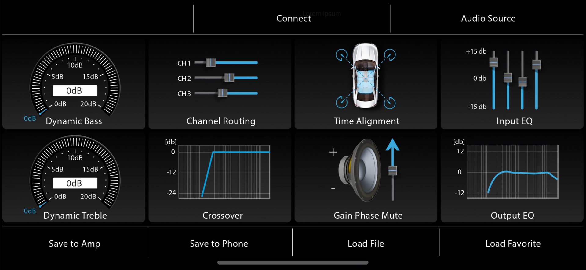 Zesilovač AXTON DSP A594DSP nabízí nový stereofonní předzesilovač pro subwooferové kanály. Basy pod sedadlem, basy v prostoru pro nohy nebo kick basy v třícestných systémech tak lze nastavit samostatně. Každý DSP kanál je samozřejmě vybaven parametrickým 31pásmovým ekvalizérem, výhybkou až do 24 dB/okt., časovou a fázovou korekcí. Vylepšená výhybka nyní nabízí tři charakteristiky filtru: Butter-worth, Linkwitz a Bessel.