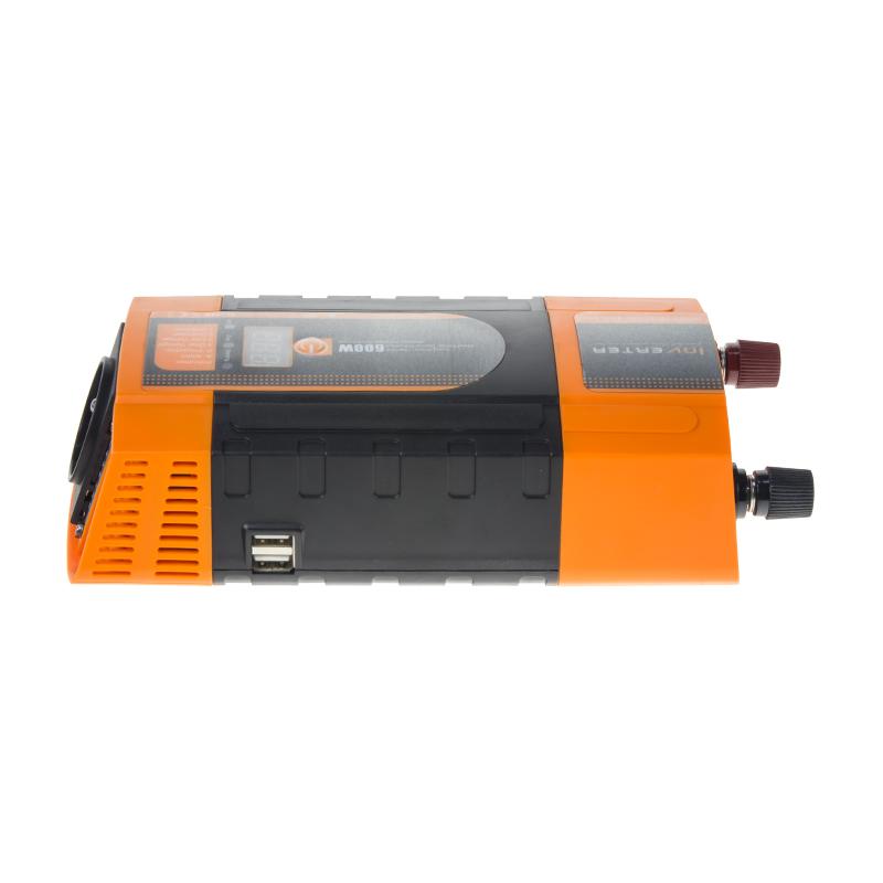 Kompaktní přenosný měnič napětí z 12/230V + USB 600W s připojením do zásuvky autozapalovače a displayem