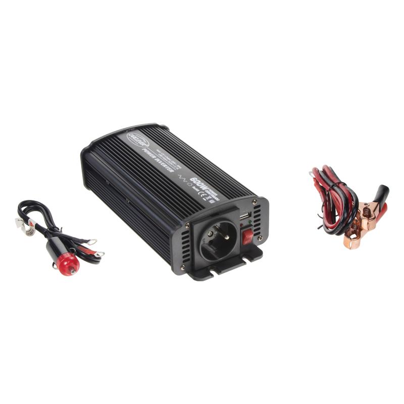 Kompaktní přenosný měnič napětí z 12/230V + USB 600W s připojením do zásuvky autozapalovače