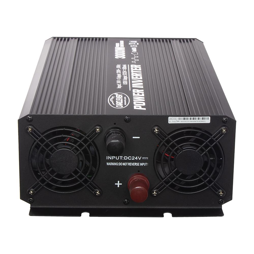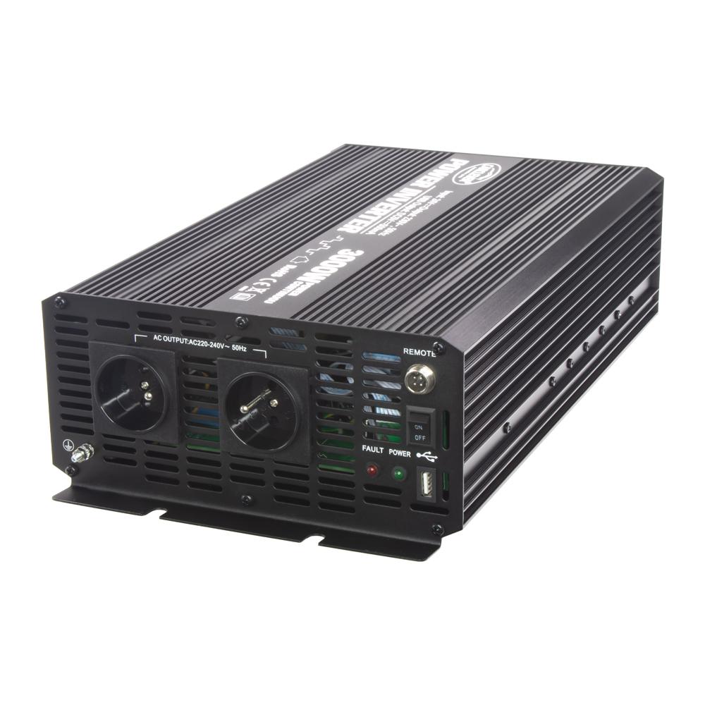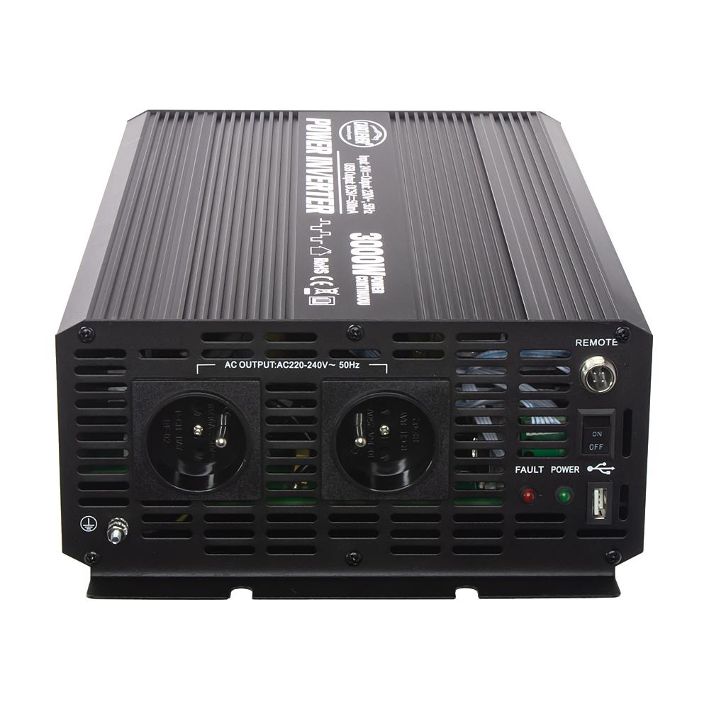 Výkonný měnič napětí z 24V na 230V/3000W + USB s obdelníkovou charakteristikou sinusoidy