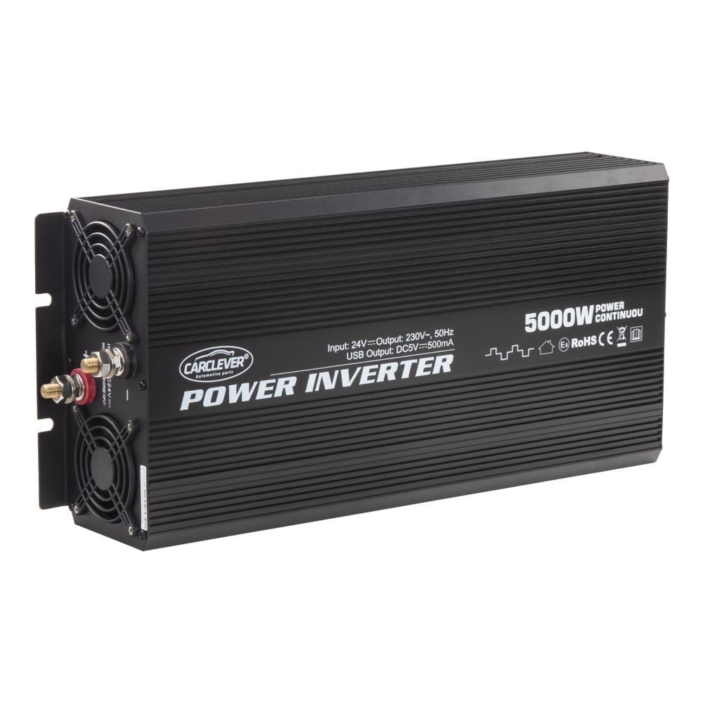 Výkonný měnič napětí z 24V na 230V/5000W + USB s obdelníkovou charakteristikou sinusoidy