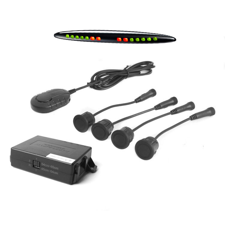 Optický a akustický parkovací asistent se 4 vnějšími snímači černé barvy, do zadního nebo předního nárazníku