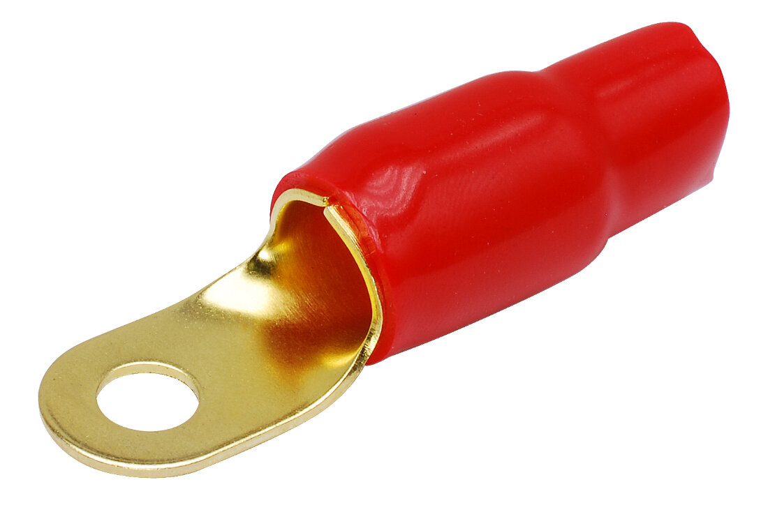 Kabelové očko 10 qmm s izolací pro napájecí kabeláž, díra 8,4 mm, červená izolace