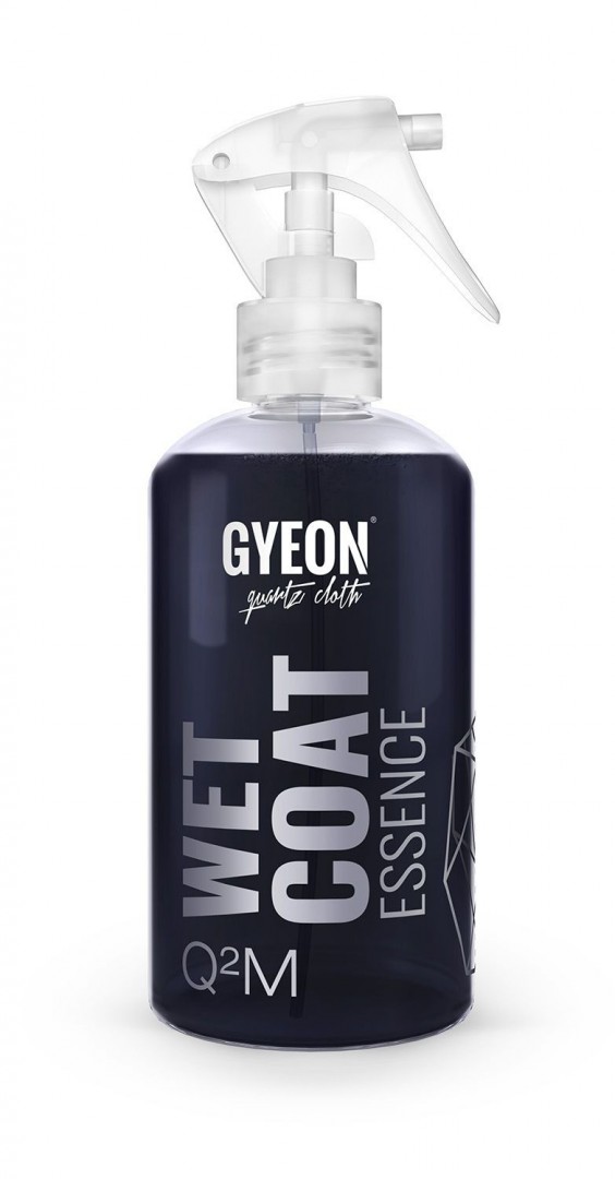 Gyeon Q²M WetCoat Essence je snadno použitelný, tzv. zesilovač hydrofobity, který nabízí okamžitou ochranu povrchu stejně jako Gyeon Q²M WetCoat, ale v mnohem větší koncentraci. Poskytuje vynikající výsledky jednoduše a rychle procesem nasprejování a následným oplachem vodou. Navzdory snadnému použití poskytuje Q²M WetCoat Essence dlouhou výdrž a chemickou odolnost. Q²M WetCoat Essence je revoluční sealant, který nabízí trvanlivou ochranu během několika minut. Skutečnou výhodou je obrovský hydrofobní a samočisticí efekt, který se dostaví okamžitě spolu s intenzivním leskem na lakovaném povrchu. Mezi hlavní výhodu patří jeho všestranný charakter, který umožňuje aplikaci na téměř každém vnějším povrchu vozidla. Dodává skvělé samočisticí vlastnosti nejen laku, ale také plastovým nebo kovovým lištám, ALU kolům nebo oknům. Q²M WetCoat Essence je více koncentrovaný a je možné ho ředit v poměru 1:5 až 1:15.