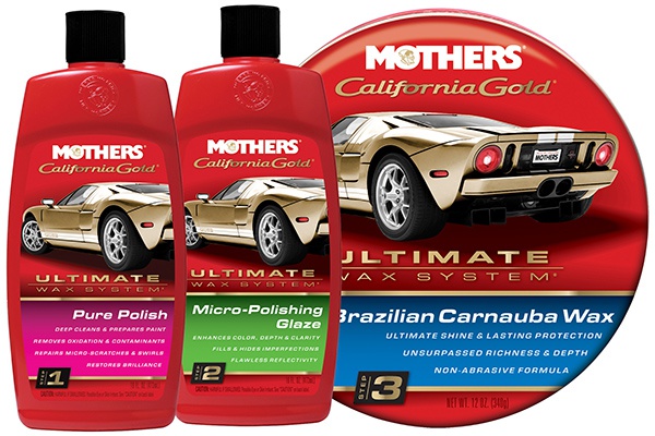 Mothers Ultimate Wax System - revoluční třífázový systém péče o lak v akčním setu. Mothers California Gold Pure Polish - čistící leštěnka, 473 ml (krok 1) + Mothers California Gold Micro-Polishing Glaze - ultra jemná leštící pasta, 473 ml (krok 2) + Mothers California Gold Pure Brazilian Carnauba Wax - karnaubský vosk pasta, 340 g (krok 3).
