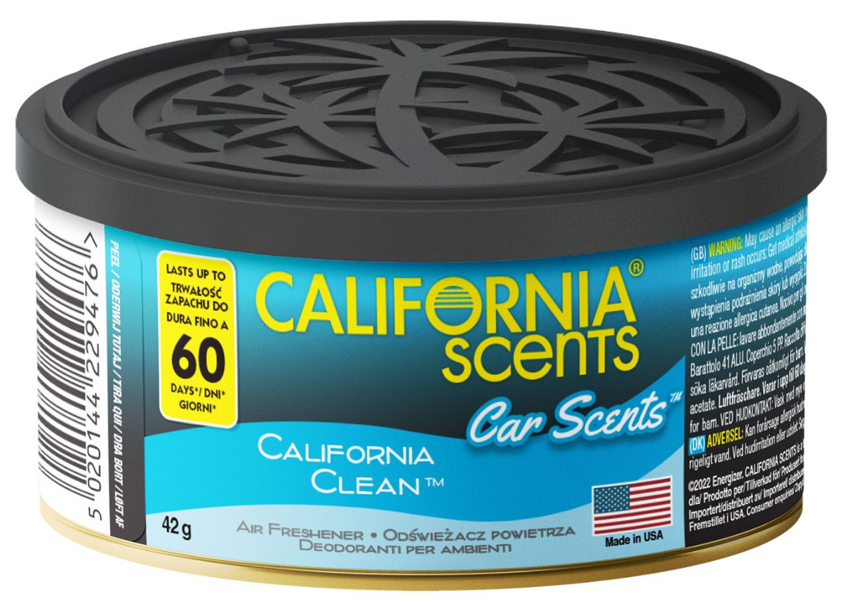 Luxusní, smyslné, trvanlivé a intenzivní vůně do auta California Scents jsou tu aby vám dokázaly, co znamená opravdu dlouhotrvající přijemná vůně ať už ve vašem voze, domácnosti nebo kanceláři. Každá plechová dóza Car Scents® obsahuje tři bloky lisovaného lnu napuštěného parfémem. Vzhledem k pevné konzistenci osvěžovače California Scents tak nehrozí únik tekutiny následovaný nepříjemným poleptáním plasotvého povrchu . V neposlední řadě je třeba zmínit, že tyto produkty California Scents jsou velmi šetrné k životnímu prostředí. Obal je tvořen recyklovatelným hliníkem a obsah (lněné bloky) je pak díky svému přírodnímu původu plně biologicky odbouratelný.