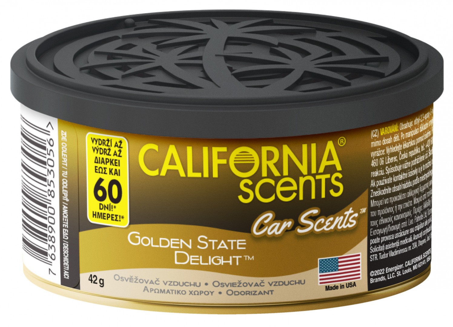 Luxusní, smyslné, trvanlivé a intenzivní vůně do auta California Scents jsou tu aby vám dokázaly, co znamená opravdu dlouhotrvající přijemná vůně ať už ve vašem voze, domácnosti nebo kanceláři. Každá plechová dóza Car Scents® obsahuje tři bloky lisovaného lnu napuštěného parfémem. Vzhledem k pevné konzistenci osvěžovače California Scents tak nehrozí únik tekutiny následovaný nepříjemným poleptáním plasotvého povrchu . V neposlední řadě je třeba zmínit, že tyto produkty California Scents jsou velmi šetrné k životnímu prostředí. Obal je tvořen recyklovatelným hliníkem a obsah (lněné bloky) je pak díky svému přírodnímu původu plně biologicky odbouratelný.