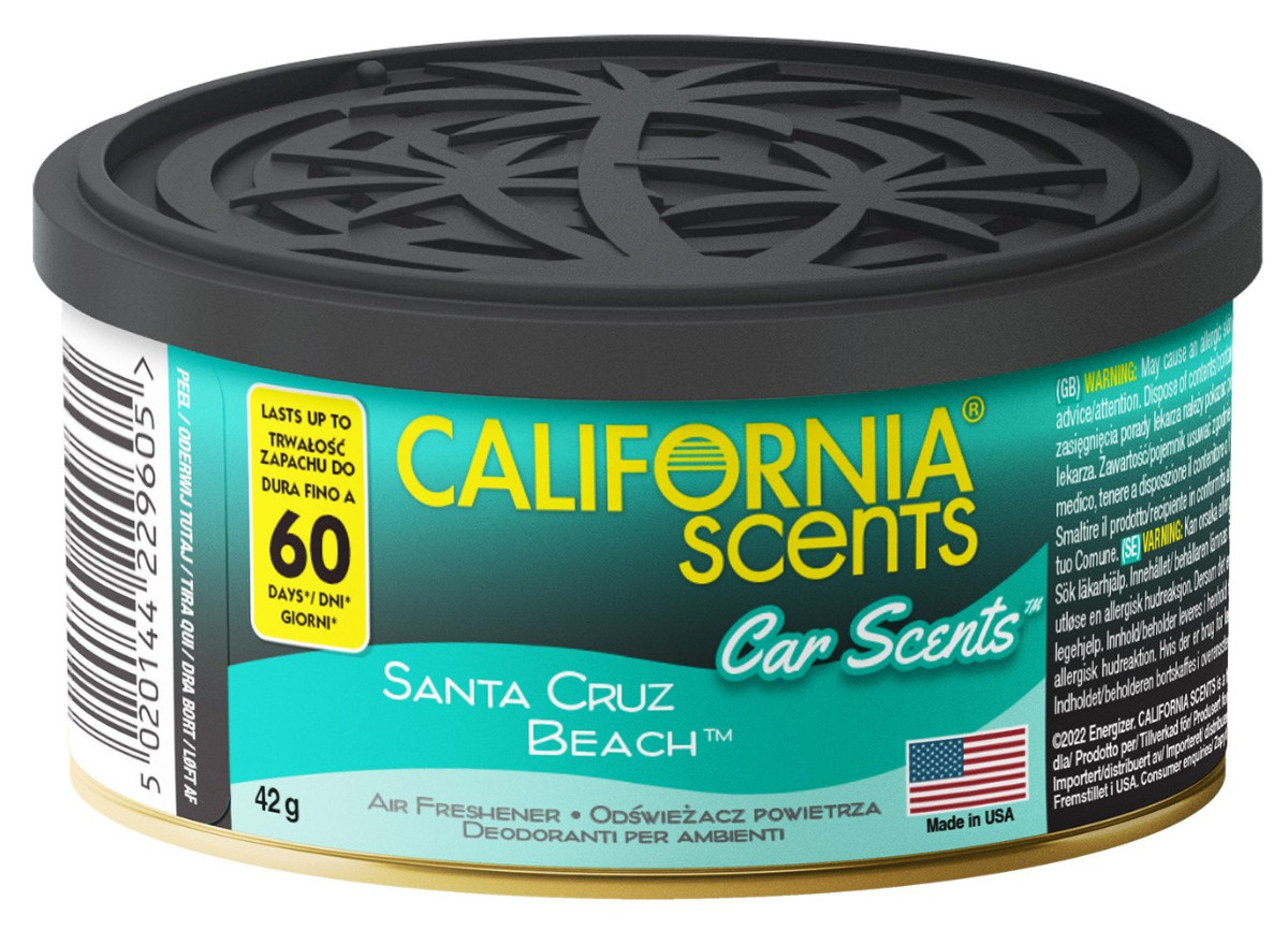 Luxusní, smyslné, trvanlivé a intenzivní vůně do auta California Scents jsou tu aby vám dokázaly, co znamená opravdu dlouhotrvající přijemná vůně ať už ve vašem voze, domácnosti nebo kanceláři. Každá plechová dóza Car Scents® obsahuje tři bloky lisovaného lnu napuštěného parfémem. Vzhledem k pevné konzistenci osvěžovače California Scents tak nehrozí únik tekutiny následovaný nepříjemným poleptáním plasotvého povrchu . V neposlední řadě je třeba zmínit, že tyto produkty California Scents jsou velmi šetrné k životnímu prostředí. Obal je tvořen recyklovatelným hliníkem a obsah (lněné bloky) je pak díky svému přírodnímu původu plně biologicky odbouratelný.