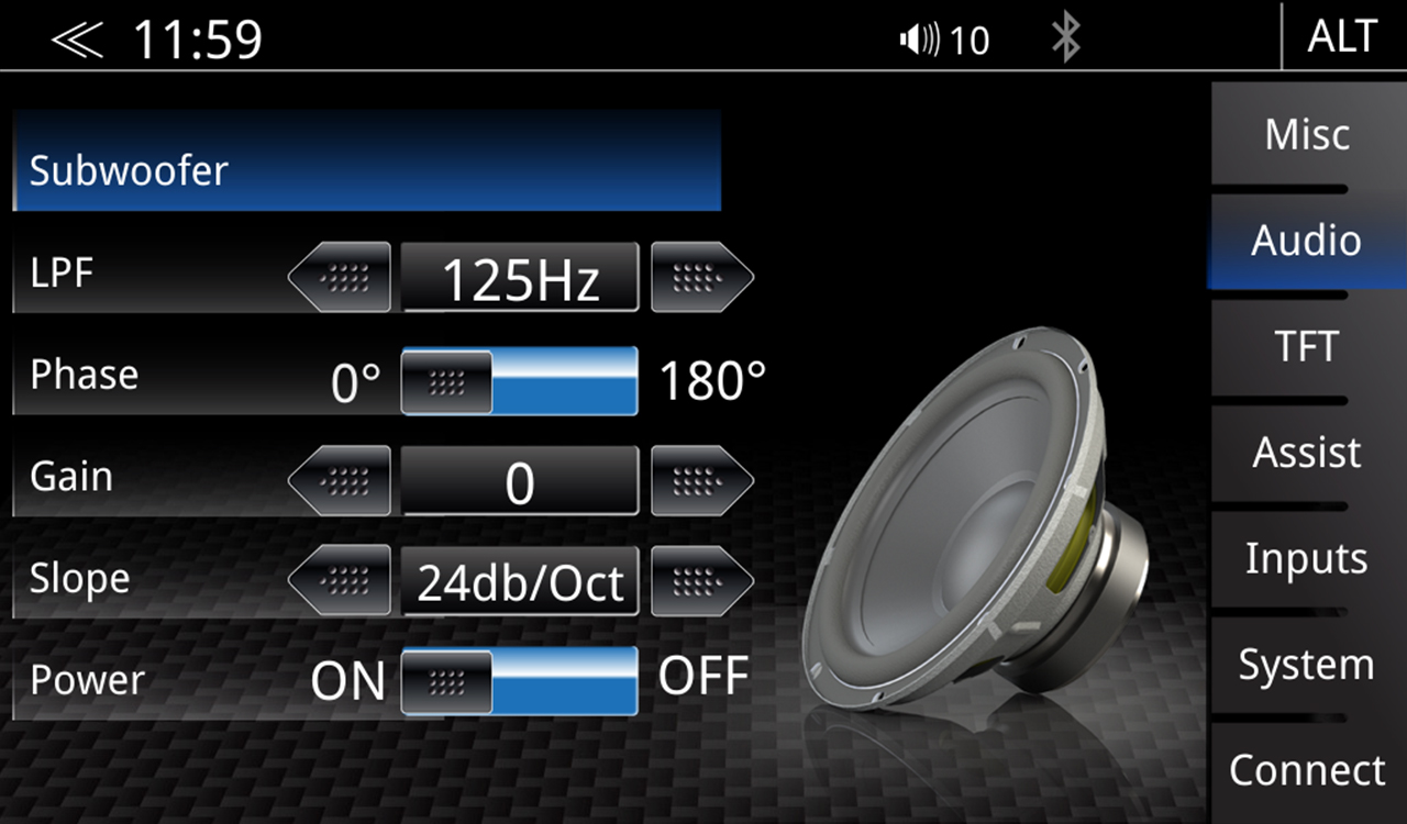 nastavení subwooferu. Volitelné frekvence x-over,