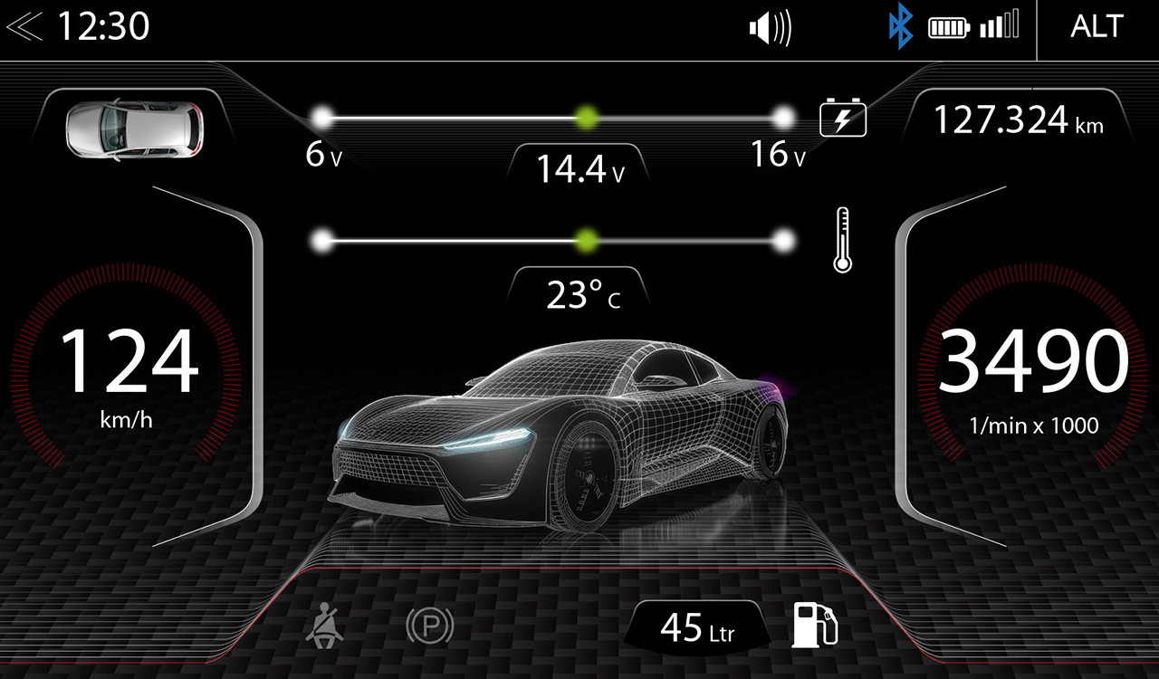 například stav palivové nádrže v litrech, napětí baterie ve