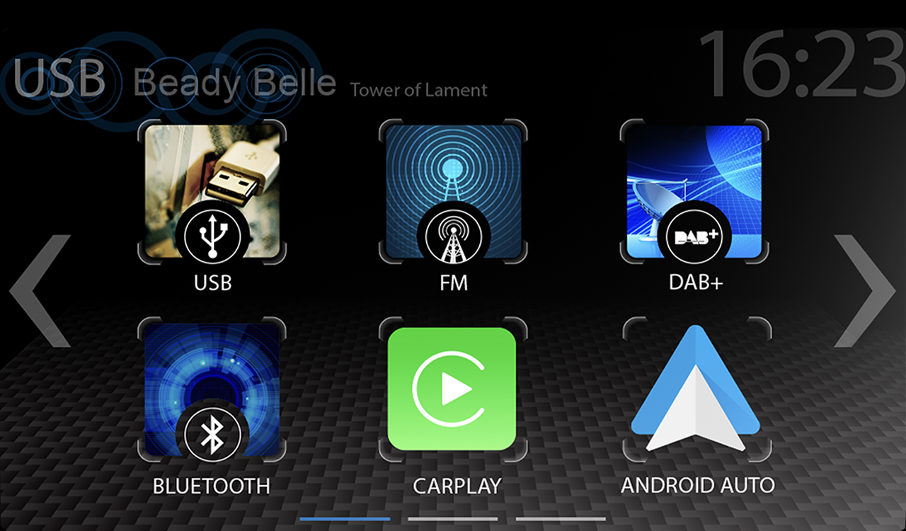 • Dvojitý tuner DAB+ s 18 předvolbami stanic a dynamickým seznamem rozhlasových stanic