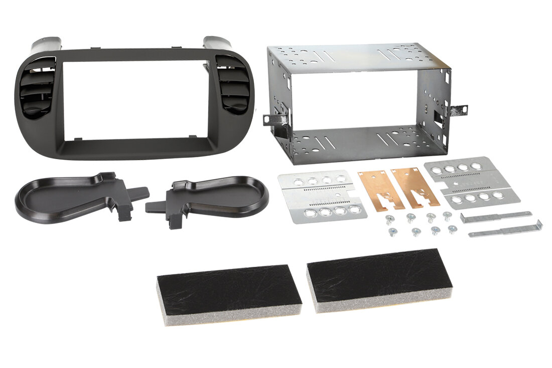 Instalační sada s kovovým rámečkem pro montář 2DIN autorádia nebo navigace. Vhodné pro vozy FIAT 500 - černá barva