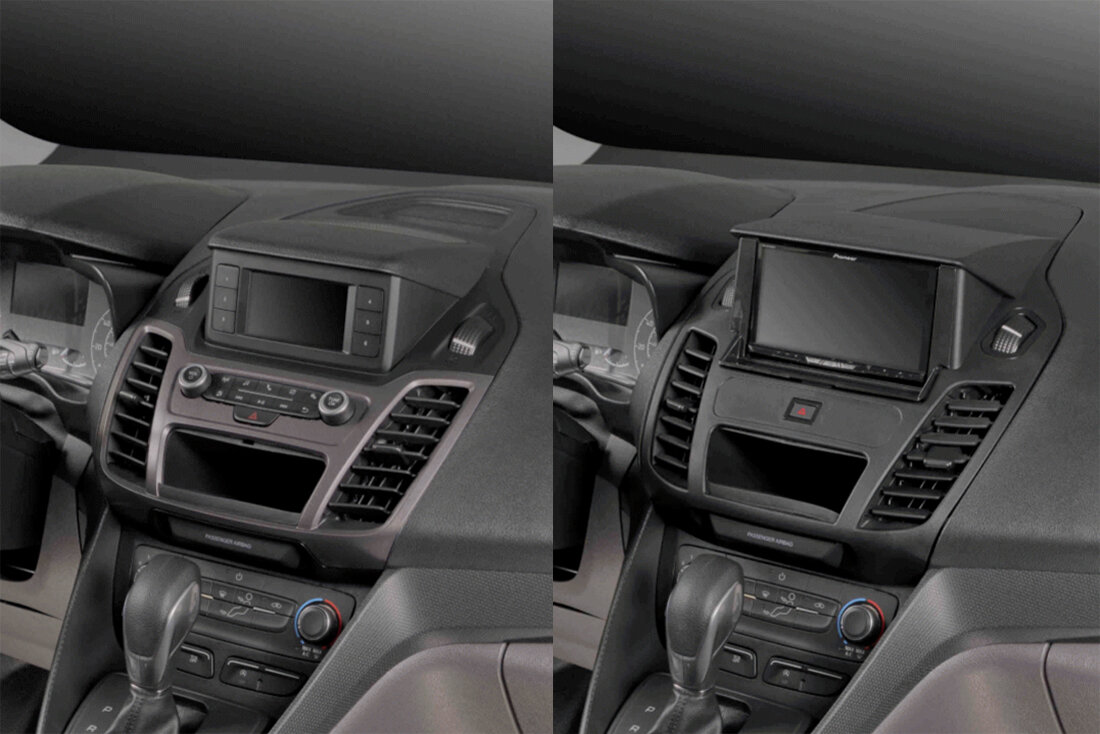Plastový rámeček pro instalaci 2DIN autorádia nebo navigace. Vhodné pro vozy Ford Transit Connect / Tourneo Connect (2018->)