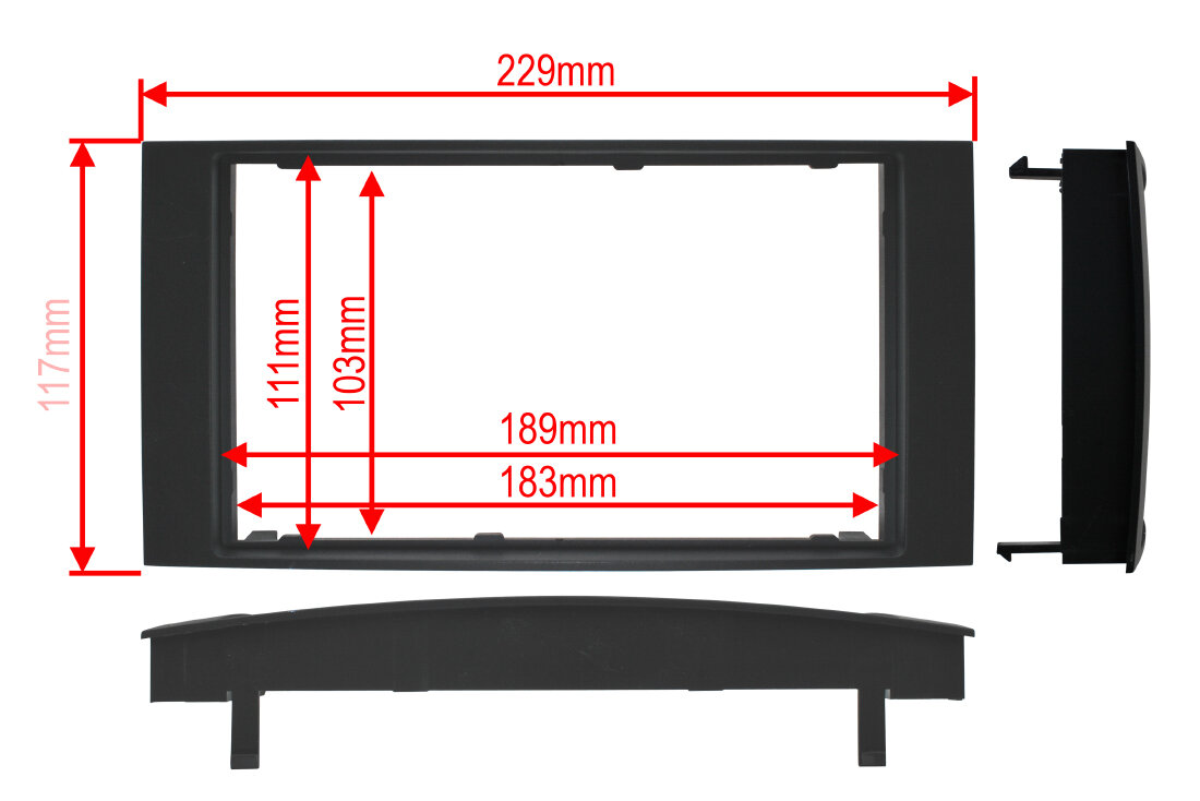 Plastový adaptér pro instalaci 2DIN autorádia nebo navigace. Vhodné pro vozy VW Touareg / Transporter T5 / Multivan T5 / Caravelle T5 / California T5 - černá