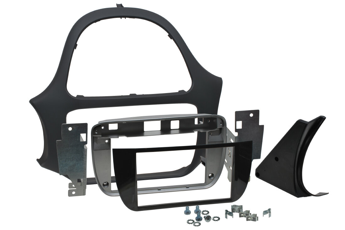 Balení obsahuje: Plastový adaptér 2DIN - 2 dílný, středový díl přístrojové desky, boční kovové úchyty, šrouby a příchytky, šablonu pro vyznačení vyříznutí otvoru, návod k instalaci do automobilu