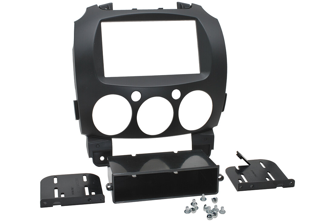 Plastový adaptér pro instalaci 1DIN nebo 2DIN autorádia nebo navigace. Vhodné pro vozy MAZDA 2 (07-15) - černá