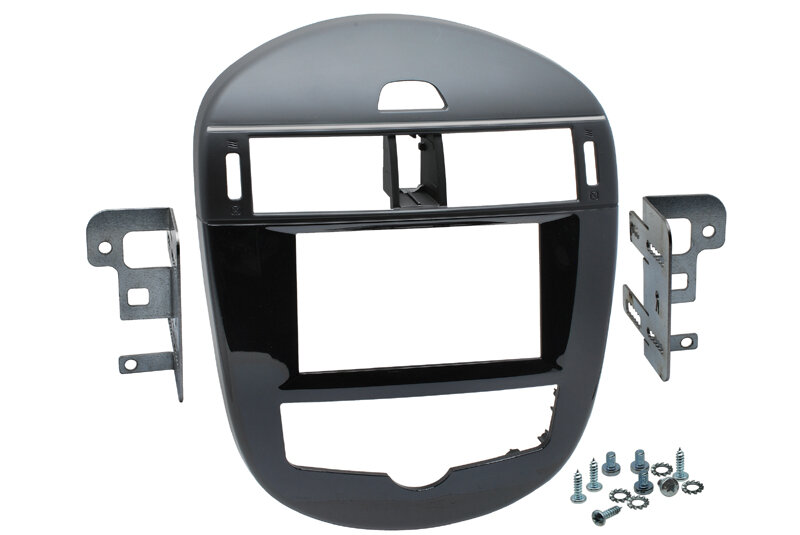 Plastový adaptér pro instalaci 2DIN autorádia nebo navigace. Vhodné pro vozy NISSAN Pulsar (15->) automatická klima - černá lesklá / matná - chromované pruhy
