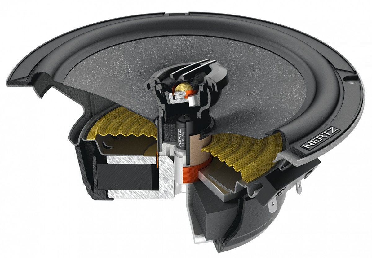 Koaxiální 2pásmové reproduktory Hertz Cento CX 165 mají nový 24 mm kopulovitý výškový reproduktor s kalotou z materiálu Tetolon®, který poskytuje více hudebního a detailního zvuku ve srovnání s tradičními plastovými materiály. Šíření zvuku bylo optimalizováno pro poslech mimo osu pomocí otočné konstrukce výškového reproduktoru. Kalota středobsu SPP-M (Semi Pressed Paper-Mica) zajišťuje vynikající akustické vlastnosti.