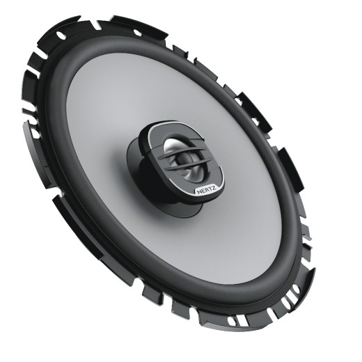 Ploché 6,5" dvoupásmové koaxiální reproduktory Hertz X 170 jsou vybaveny speciálně navrženým čelním panelem výškového reproduktoru optimalizovaným pro vysoký výkon, který navíc zajišťuje lineární frekvenční odezvu. Membrána z lisovaného papíru, která odpuzuje vodu, spolu s pěnovým závěsem poskytují velmi vysokou zatížitelnost a prodlouženou odezvu nízkých kmitočtů, aby se dosáhlo bohatého zvuku, i když jsou reproduktory napájeny jen ze samotného autorádia. 25 mm středobasová cívka, poháněná feritovým magnetem s vysokou hustotou toku, nabízí dynamické ovládání výkonu pro silný a nezkreslený zvuk.
