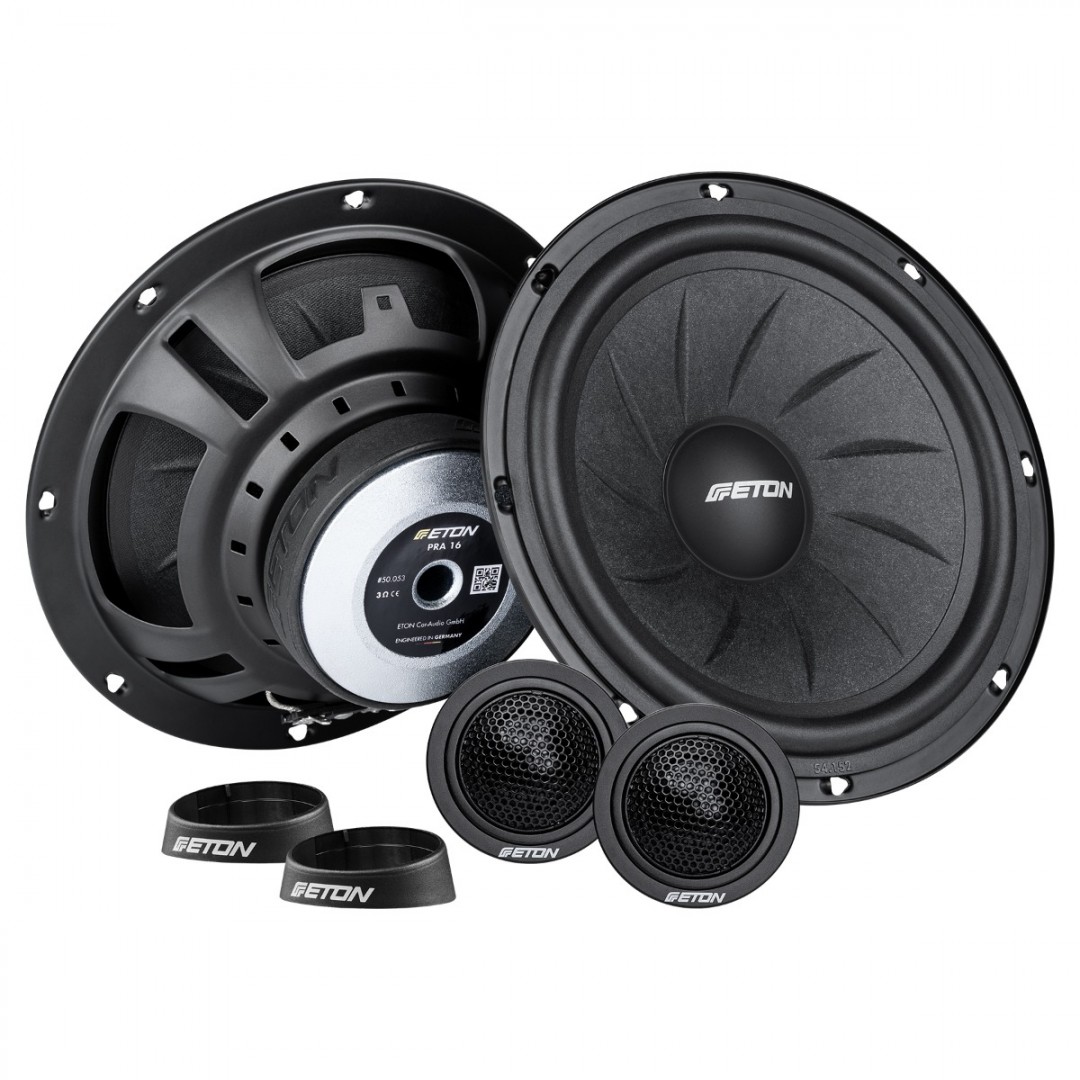 Komponentní systémy ETON řady PRA zaujmou svým hřejivým, plným zvukem, sytými hlasy a neuvěřitelnou prostorovou hloubkou! Díky nově vyvinuté technologii membrány PRA si můžete vychutnat špičkový zvuk i v základní třídě: Membrána zpevněná žebry ze skelného papíru je skutečným vrcholem a dalším milníkem ETON ve vývoji membrán. Je mimořádně lehký a také mimořádně tuhý, což jsou základní požadavky na vynikající reproduktor. Díky vyztužení žebry bylo dosaženo maximální torzní tuhosti. To zajišťuje mimořádně dynamickou a silnou reprodukci basů – extrémně přesnou! Řada PRA je také vybavena typickým kovovým košem ETON s dvojitou vzpěrou, který je odolný proti zkroucení a optimalizuje proudění. Díky technologii 3 ohmů jsou komponentní systémy PRA mimořádně účinné, a to i v kombinaci s továrními hlavními jednotkami bez přídavného zesilovače. Woofery/středotónové reproduktory řady PRA byly speciálně vyvinuty pro použití bez dalších výhybek, což zvyšuje účinnost a efektivitu. V kombinaci s 25mm (1″) hliníkovým výškovým reproduktorem vznikl dokonalý reproduktorový systém pro reprodukci nejjemnějších detailů – precizní a vyplňující místnost. Řada PRA, vyladěná pro dlouhodobé používání s nezbytným faktorem zábavy, přesvědčí více než působivým poměrem ceny a výkonu!