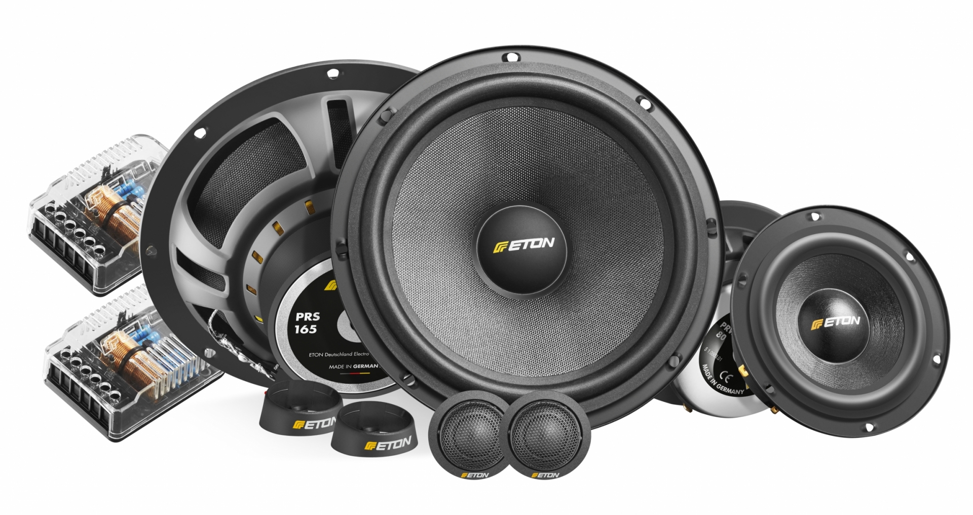 ETON PRS 165.3 je částečně aktivní 3pásmový komponentní systém, který patří k nejlepším ve své třídě! Zesílená membrána ze skelného vlákna a papíru se stará o dynamickou, mocnou reprodukci zvuku. Otevřeně znějící středový reproduktor s bohatými detaily – to je pouze několik atributů komponentního systému PRS 165.3. Zesílený kovový koš se stará o optimální stabilitu a nabízí dobrý průtok vzduchu pro feritový magnet. K připojení basového reproduktoru je zapotřebí basového filtru při zdroji signálu nebo zesilovače.