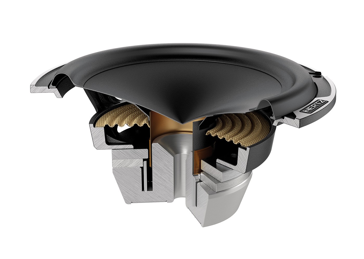 Reproduktorový systém Hertz MLK 1650.3 Legend je dvoupásmová sestava určená pro audiofilní puristy, jejímž cílem je dosáhnout maximální jednotnosti barvy zvuku v kombinaci s velmi vysokou dynamikou a extrémně rozšířenou frekvenční odezvou. Tento komponentní systém je určený výhradně pro aktivní zapojení a skládá se z výškových a středobasových reproduktorů nejvyšší modelové řady Mille Legend. Výškové reproduktory Hertz ML 280.3 Legend disponují kalotou o průměru 28 mm, která je vyrobena z vláken materiálu Tetolon®. Jedná se o mix bavlny a hedvábí, který po impregnaci přírodní pryskyřicí vyniká velmi přirozeným a nezabarveným zvukem s minimem rezonancí. Poměr průměru kaloty, její výšky a profilu okruží zabezpečuje velmi nízké Fs, široké rozšíření v nízkofrekvenčním pásmu a velmi nízké zkreslení. Pro zajištění mimořádného výkonu a velmi vysoké tepelné stability i u skladeb obzvláště bohatých na basové frekvence je ML 1650.3 Legend vybaven 36mm pohyblivou kmitací cívkou. Tato velikost zajišťuje nejlepší kompromis mezi výkonem a vysokofrekvenční odezvou. Geometrie membrány byla předmětem hloubkových studií a měření, což vedlo k optimalizaci profilu V-cone®. Tento profil zabraňuje tomu, aby se membrána během své činnosti deformovala, zajišťuje její správnou polohu a maximalizuje produkci akustického tlaku. Membrána z lisované buničiny s bavlněnými vlákny kombinující tuhost a lehkost pro dosažení široké frekvenční odezvy a omezeného rozpadu při vysokých frekvencích. Výsledkem je komponentní systém pro instalace zaměřené na špičkovou kvalitu zvuku a zároveň velmi vysoký výkon.
