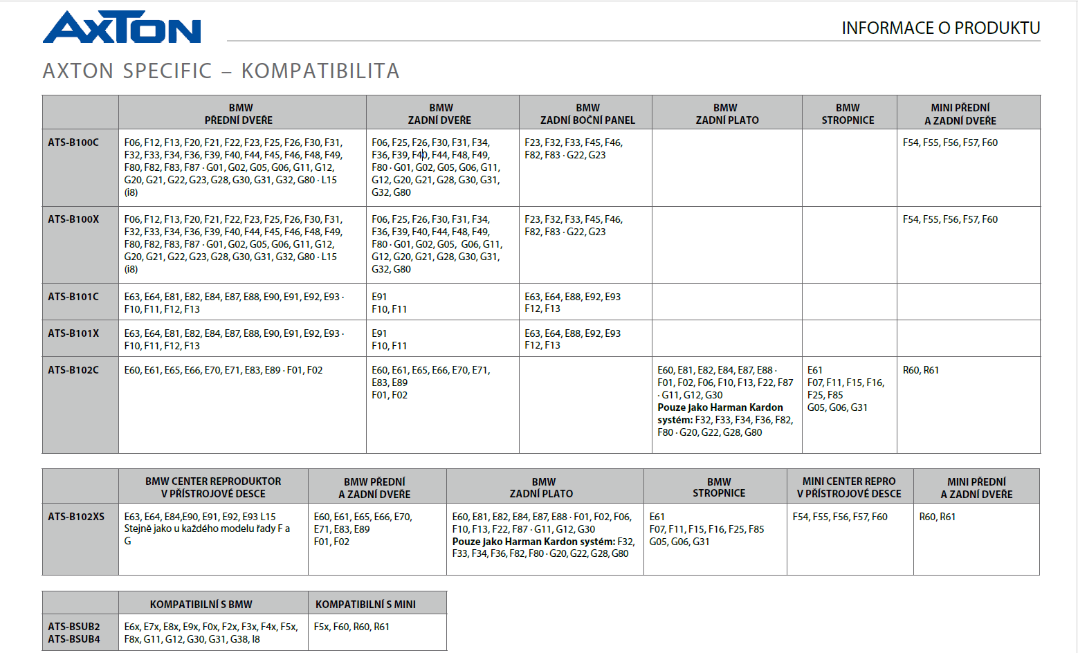 • Podsedadlové subwoofery pro modely BMW