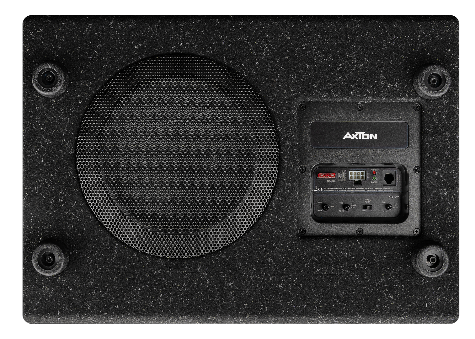 280 mm aktivní bassreflexový subwoofer do rezervního kola, 150 W RMS, vysokoúrovňové vstupy s automatickým zapínáním