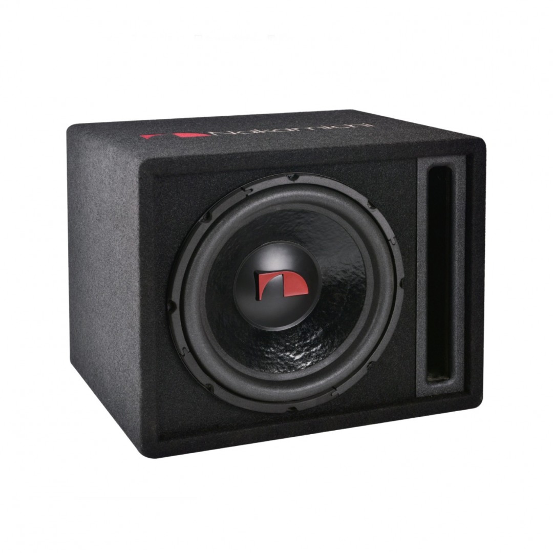 Připravte se na pořádnou porci basů se subwooferem Nakamichi NBX350. Uvnitř této bassreflexové ozvučnice se totiž ukrývá subwoofer o výkonu 350 W RMS. Přesně naladěná štěrbina spolu s výkonným 12" subwooferem umožní hluboké a úderné podání basové složky. Designová ozvučnice se zaoblenými hranami a vyšitým logem Nakamichi na horní straně ozvučnice.