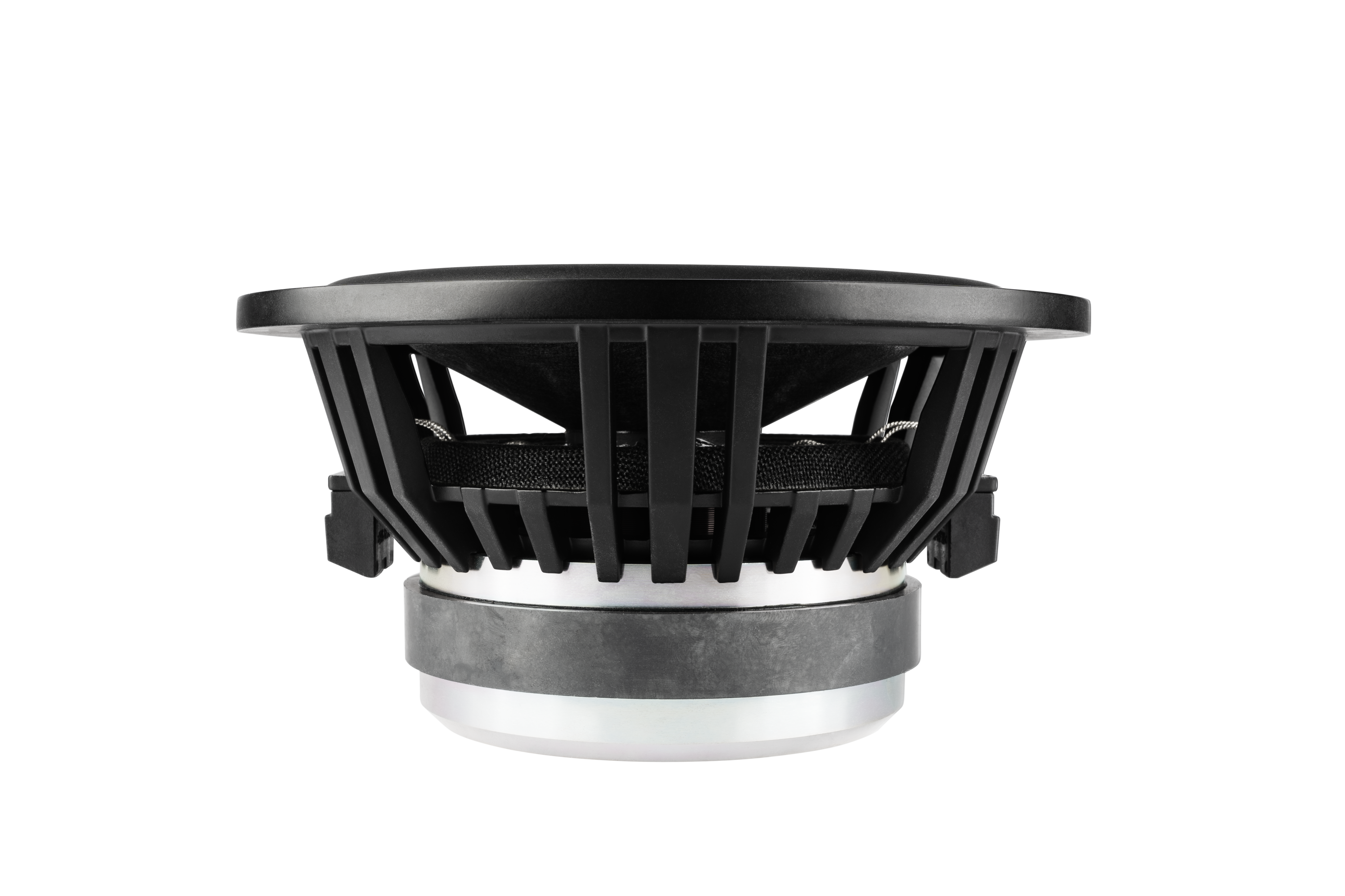 Vysoce tuhý protiprachový hliníkový kryt s povrchovou úpravou má díky speciálnímu upevnění na membránu a kmitací cívku lepší odvod tepla a zvyšuje tak tepelnou zatížitelnost. Nově navržené připojovací svorky se šroubovým připojením zaručují bezpečné připojení.
