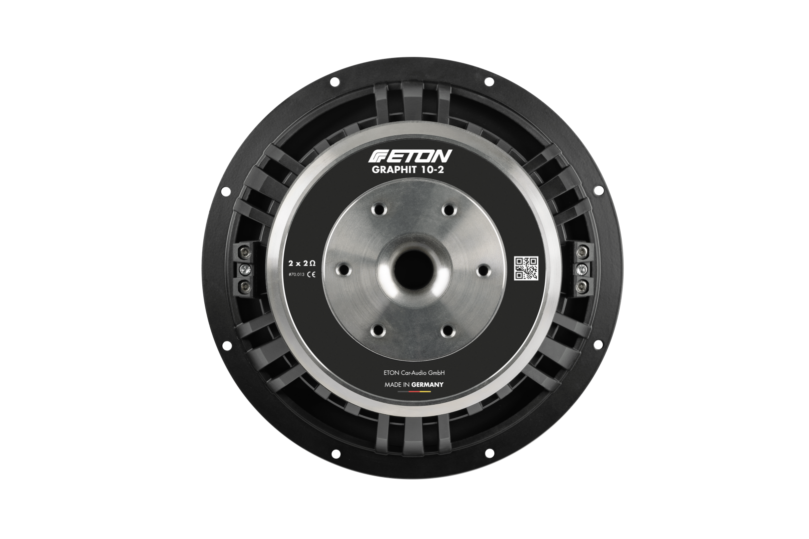 Subwoofery GRAPHIT společnosti ETON nabízejí typická vylepšení a inovativní řešení detailů: patří mezi ně speciálně vyvinutý hliníkový odlitek koše, který zaručí účinné chlazení pohyblivých částí díky speciálním větracím otvorům. Extrémně silné feritové magnety a velké dvojité kmitací cívky zajišťují výkonný pohon. CNC obráběné pólové desky s velkými středovými otvory a dodatečným odvětráním poskytují potřebnou hloubku vibrací a zajišťují vysokou podporu chlazení. Nově vyvinutá, extrémně tuhá carbon fleece vícevrstvá membrána v kombinaci s odolným rozšířeným závěsem, zajišťuje hudební reprodukci, která je věrná přesnému rytmu s ostrostí břitvy a velmi vyjímečnou dynamikou.