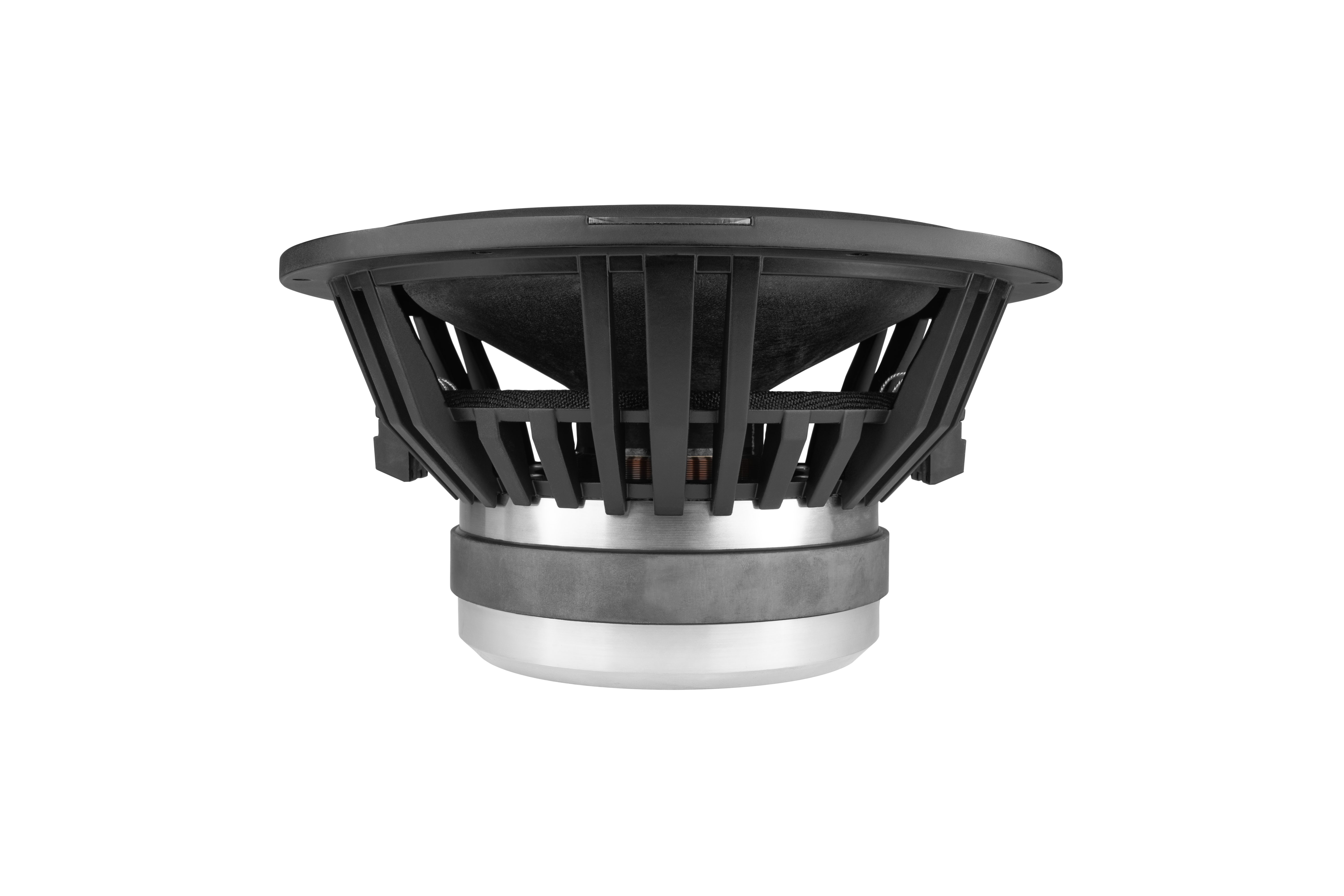 Vysoce tuhý protiprachový hliníkový kryt s povrchovou úpravou má díky speciálnímu upevnění na membránu a kmitací cívku lepší odvod tepla a zvyšuje tak tepelnou zatížitelnost. Nově navržené připojovací svorky se šroubovým připojením zaručují bezpečné připojení.