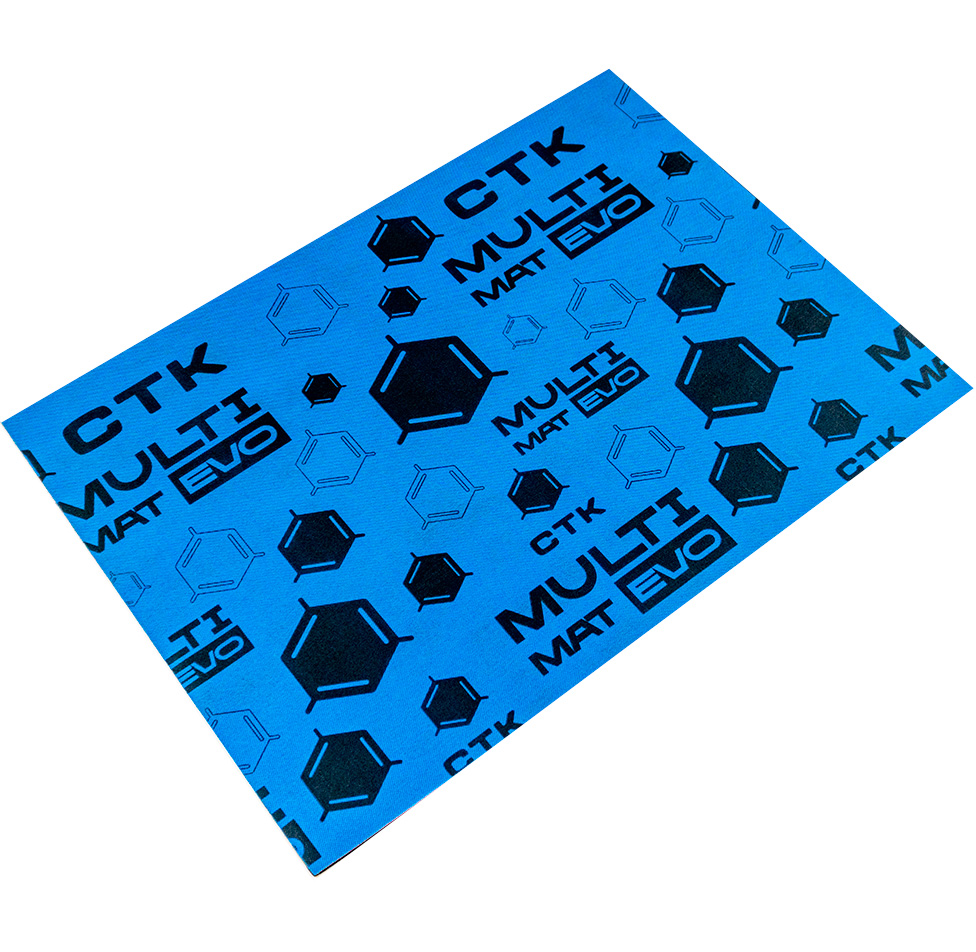 Multimat EVO se skládá z inovativní akustické membrány, pěnové pryžové zvukotěsné vrstvy a lepícího butylového tmelu pohlcujícího vibrace. Tento produkt se snadno nanáší, krásně sedí na konturách a hlavně okamžitě absorbuje vibrace. I přes extrémní antivibrační vlastnosti poskytuje vysokou úroveň zvukové izolace – až 35 dB, což nenabízí žádný konkureční materiál. Materiál je voděodolný. Doporučuje se použít k ošetření podlahy automobilu nebo jako druhá vrstva na zvukově tlumící materiály pro místa se zvláště silnou hlukovou zátěží. Materiál je opatřen extra efektivní samolepící vrstvou, která garantuje maximální funkčnost po celou dobu životnosti materiálu.