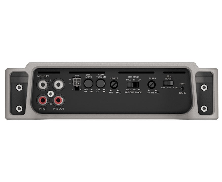 2 kanálový zesilovač, 2 x 140 / 190 W RMS (4 / 2 Ω), 1x380W RMS (4Ω můstek), napájení 12V