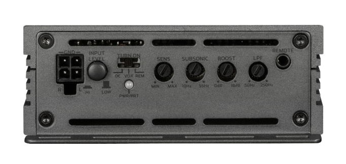 1 kanálový modul zesilovače pro montáž do ozvučnice, výkon 540 W RMS / 4 Ohm, kabelové dálkové ovládání