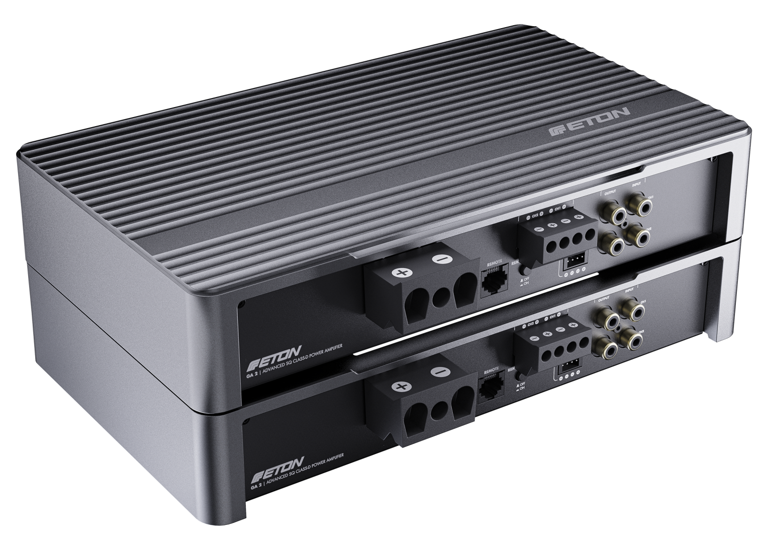 Nová řada GA s vysokou kvalitou zvuku rozšiřuje nabídku prémiových zesilovačů ETON o 2kanálový výkonový zesilovač GA 2 a 4kanálový model GA 4.