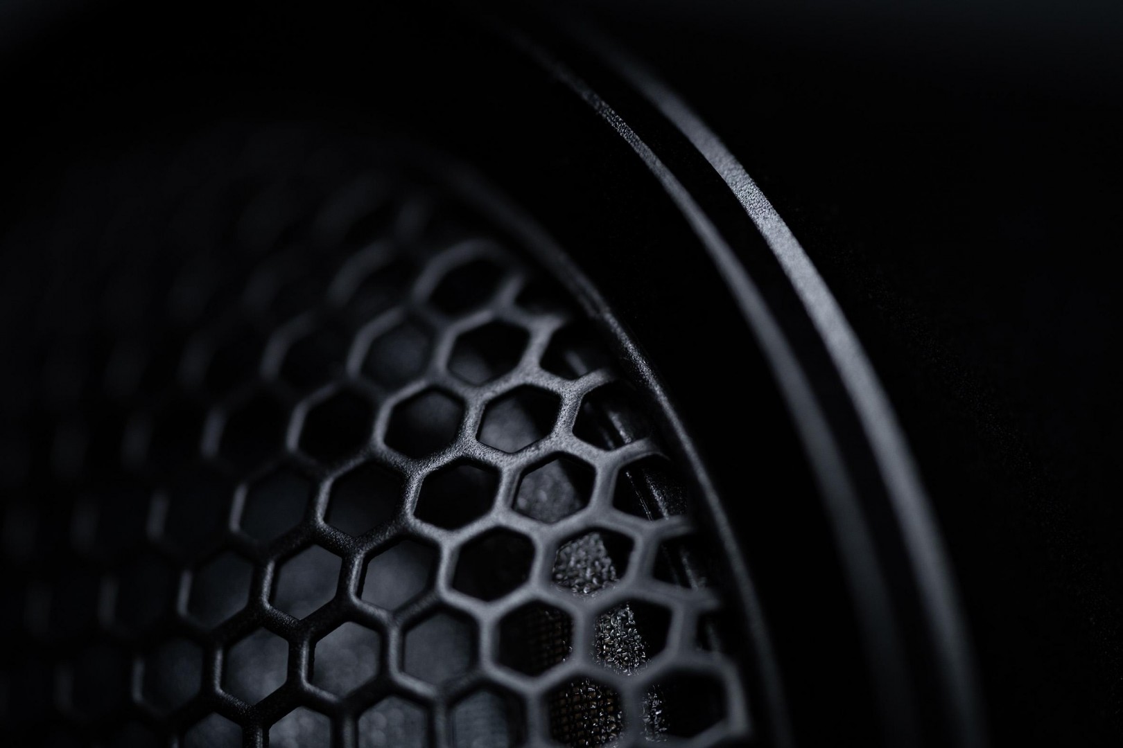 Maximálně propustná, vysoce kvalitní kovová mřížka s šestihrannými otvory je držena v obvodové drážce magnetickou silou neodymového měniče a v případě potřeby ji lze vyjmout.