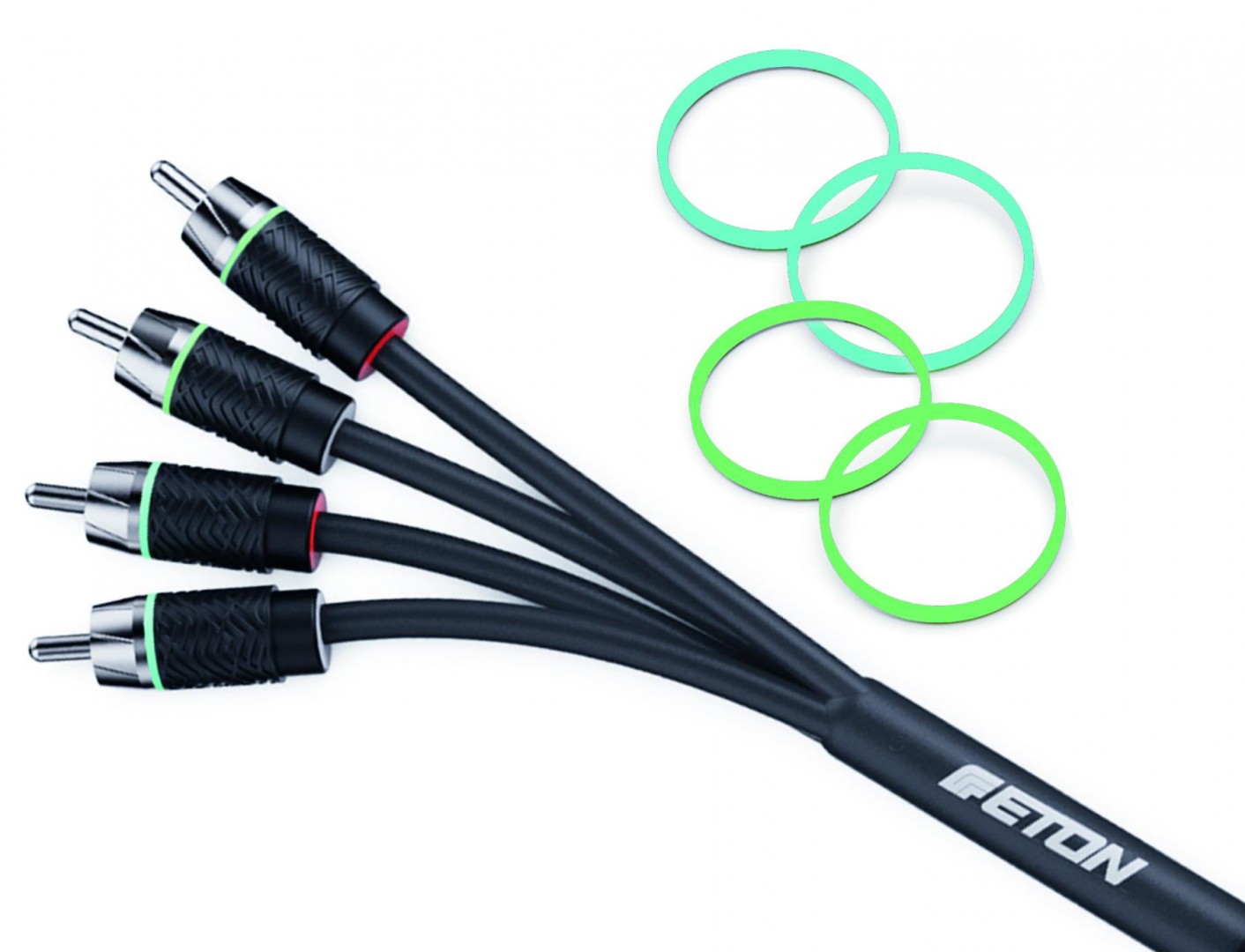 Série ETON PERFORMANCE zahrnuje pět vysoce kvalitních, extrémně flexibilních a cenově výhodných RCA kabelů. Pseudo paralelně-symetricky navržené kabely zaujmou svými detaily: mají kroucené vnitřní vodiče pro signál a zem (hot/GND) a vnější stínění z fólie Mylar s kovovým povrchem. Dodatečné jednostranné spojení zemnění s kovovým plášťovým stíněním zajišťuje potlačení rušení, ochranu a určuje směr toku signálu. Kroucené vnitřní vodiče těchto RCA kabelů jsou vyrobeny z jemně spletené, vysoce čisté, 100% bezkyslíkaté OFC mědi (20/0,12 mm), která umožňuje optimální přenos signálu a reprodukci zvuku bez zkreslení v celém frekvenčním rozsahu. To umožňuje detailní a čistý zvukový obraz – za nejlepší poměr cena/výkon. Kromě stínění, které je vytvořeno silným kroucením, mají kabely plášťové stínění z kovem potaženého Mylaru. Tímto způsobem stíněné kabely účinně minimalizují elektromagnetické rušení z palubní elektroniky nebo rušení signálu. Speciálně vyvinuté, krátké plastové konektorové pouzdro umožňuje snadnou instalaci i v prostorově omezených místech. Vysoce vodivé kontaktní kolíky jsou podélně prořezané a při zasunutí se roztahují – stejně jako diagonálně drážkovaný prstenec vnějšího kontaktu konektoru – a tím zajišťují pevné spojení pro maximální kvalitu přenosu. Díky protiskluzovému rýhovanému vzoru ETON a minimální velikosti 20,5 mm lze zástrčky snadno a flexibilně zasunout.