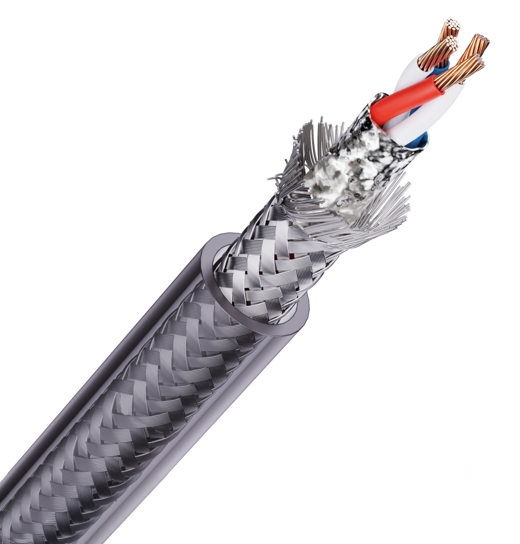 Kroucené vnitřní vodiče z jemně pletené, vysoce čisté, 100% bezkyslíkaté mědi typu OFC (20×0,12 mm) umožňují optimální přenos signálu bez zkreslení a zajišťují věrnou reprodukci zvuku v celém frekvenčním rozsahu. Výsledkem je detailní a čistý zvukový obraz.