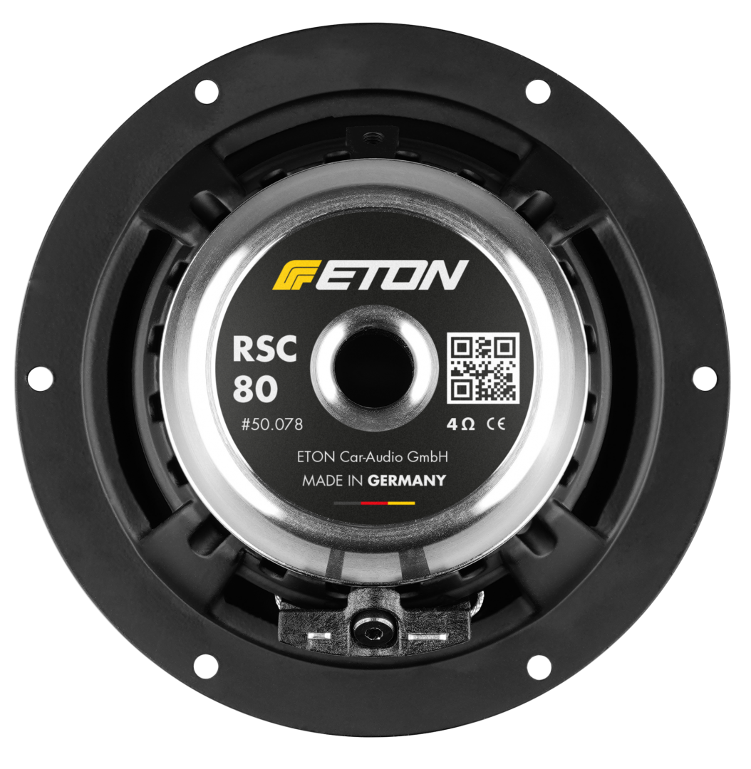 Membrána má konkávní hliníkový vrchlík v odolném koši z tlakově litého hliníku ETON – extrémně plochý design, který se snadno instaluje. Výkonný neodymový magnet pohání membránu s velkou silou a vysokou věrností impulsů. Teplo je optimálně odváděno přes velký otvor v jádře – bez jakéhokoli hluku proudění. RSC 80 je jeden z nejlepších středotónových systémů ve své třídě, vyrobený v Německu. RSC 80 je ideálním partnerem pro komponentní systém RSC 165 a nabízí nekompromisní zvukový výkon: vokály jsou reprodukovány živě, se senzačními detaily – přesvědčivé ve všech ohledech.