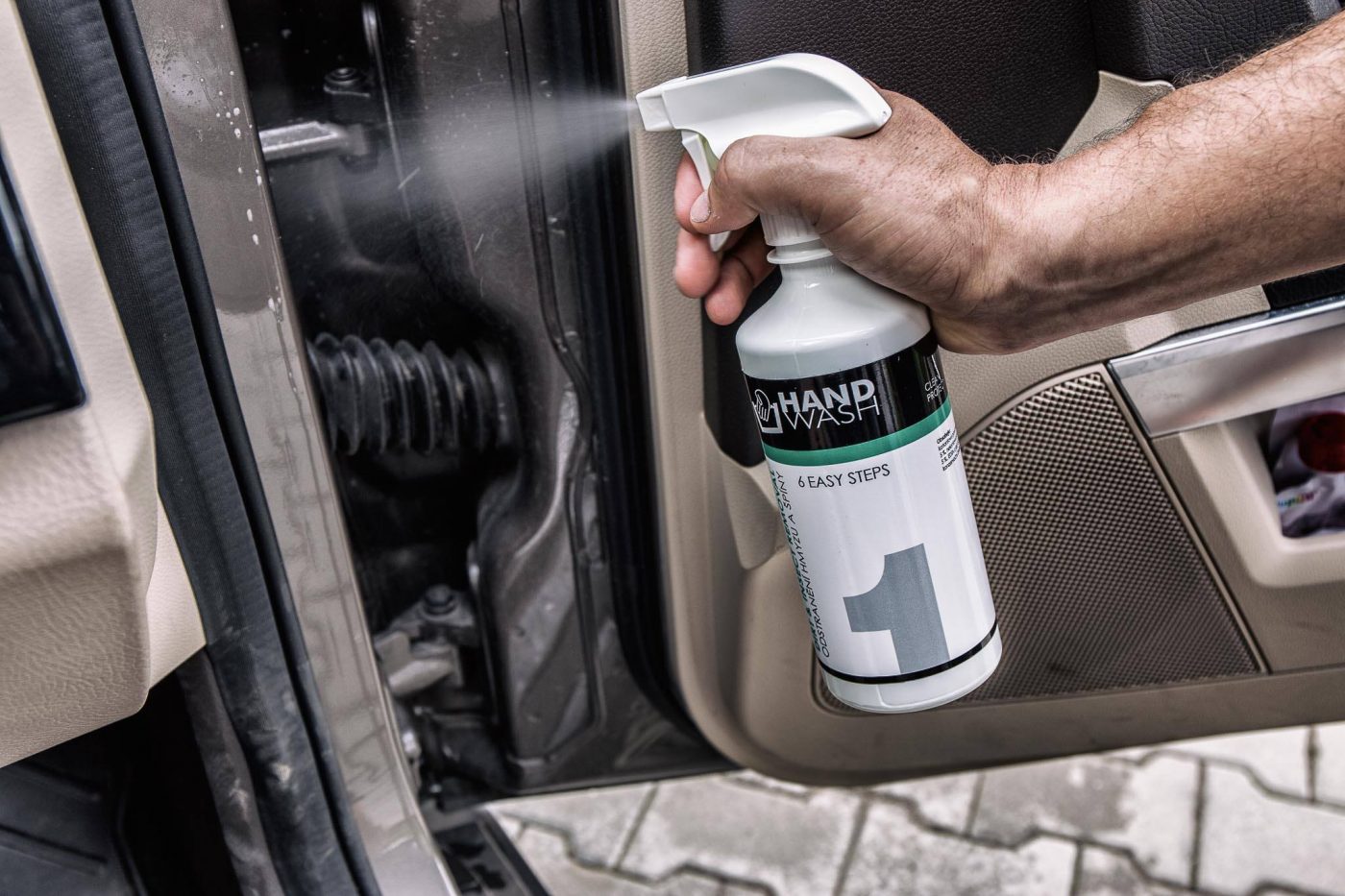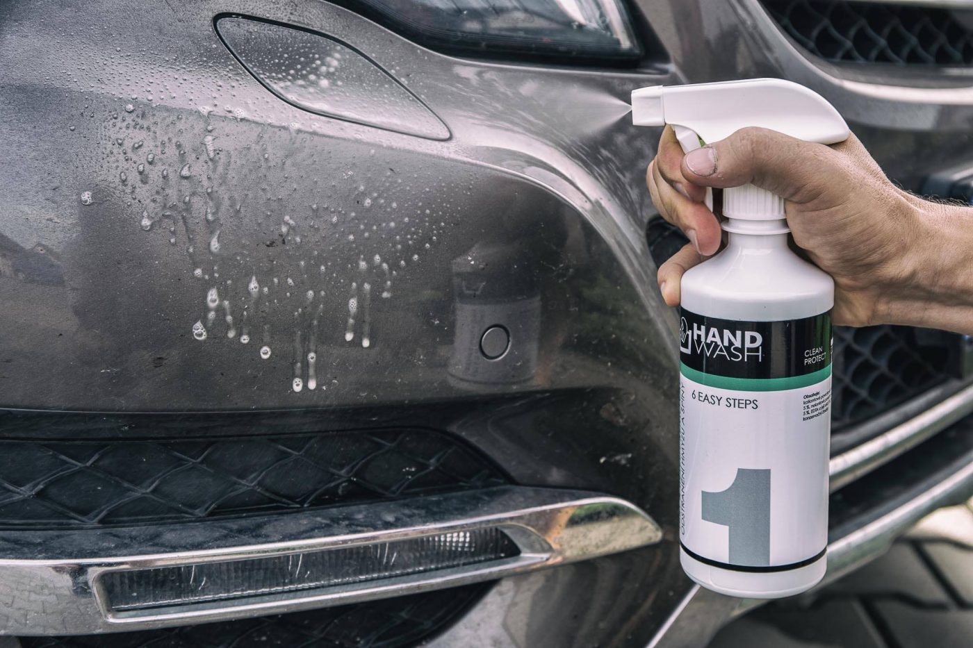 První nevyhnutný krok při celkovém mytí automobilu, odstranění hmyzu a čištění disků kol je použít přípravek – předmývač karoserie DIRT & INSECT REMOVAL / ODSTRANĚNÍ HMYZU A ŠPÍNY.
