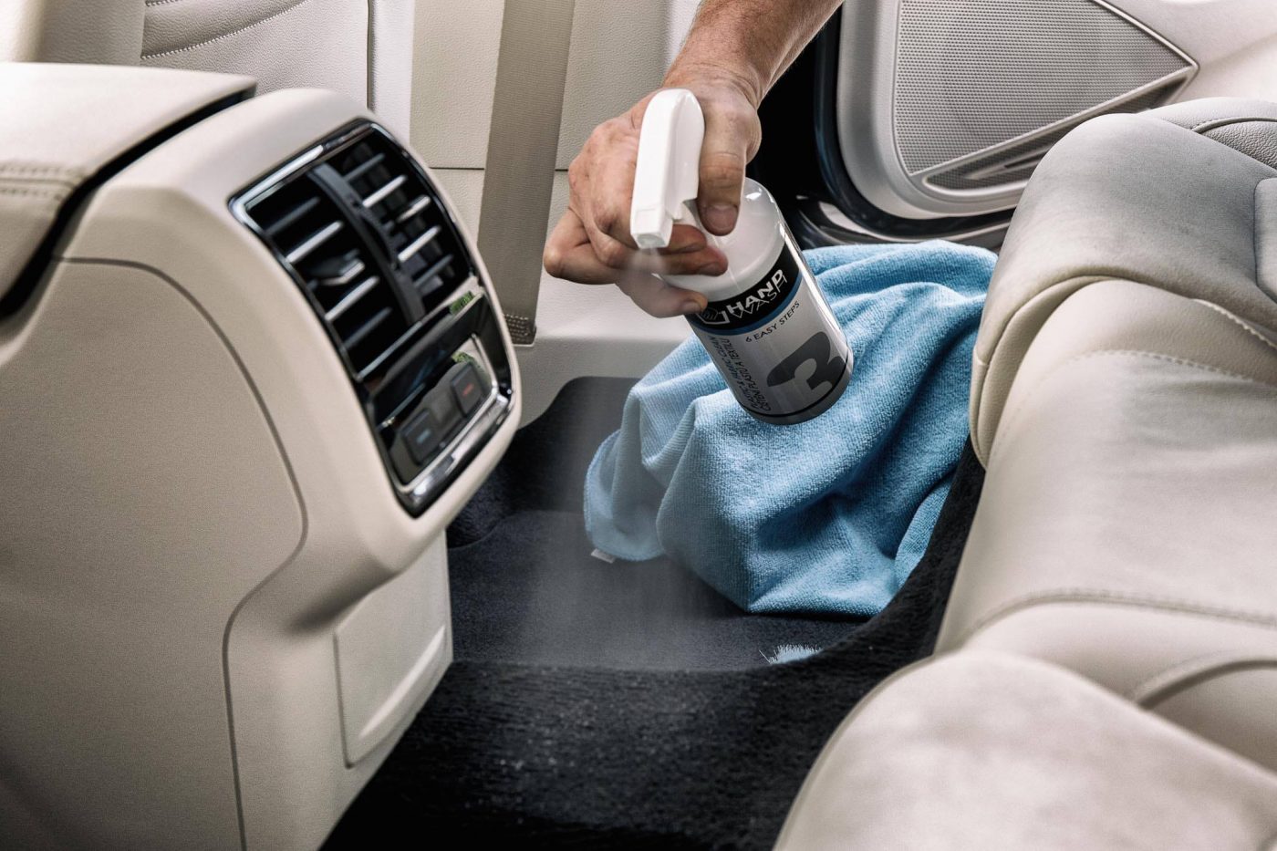Základem při čištění interiérů a tepování interiérů je vytáhnout z auta všechno ven a odložit stranou – nejlépe do tašky a následně interiér automobilu pořádně vyluxovat. Nebudete se tak zdržovat zbytečným překládáním věcí z místa na místo a utěrky z mikrovlákna se nebudou tak špinit.