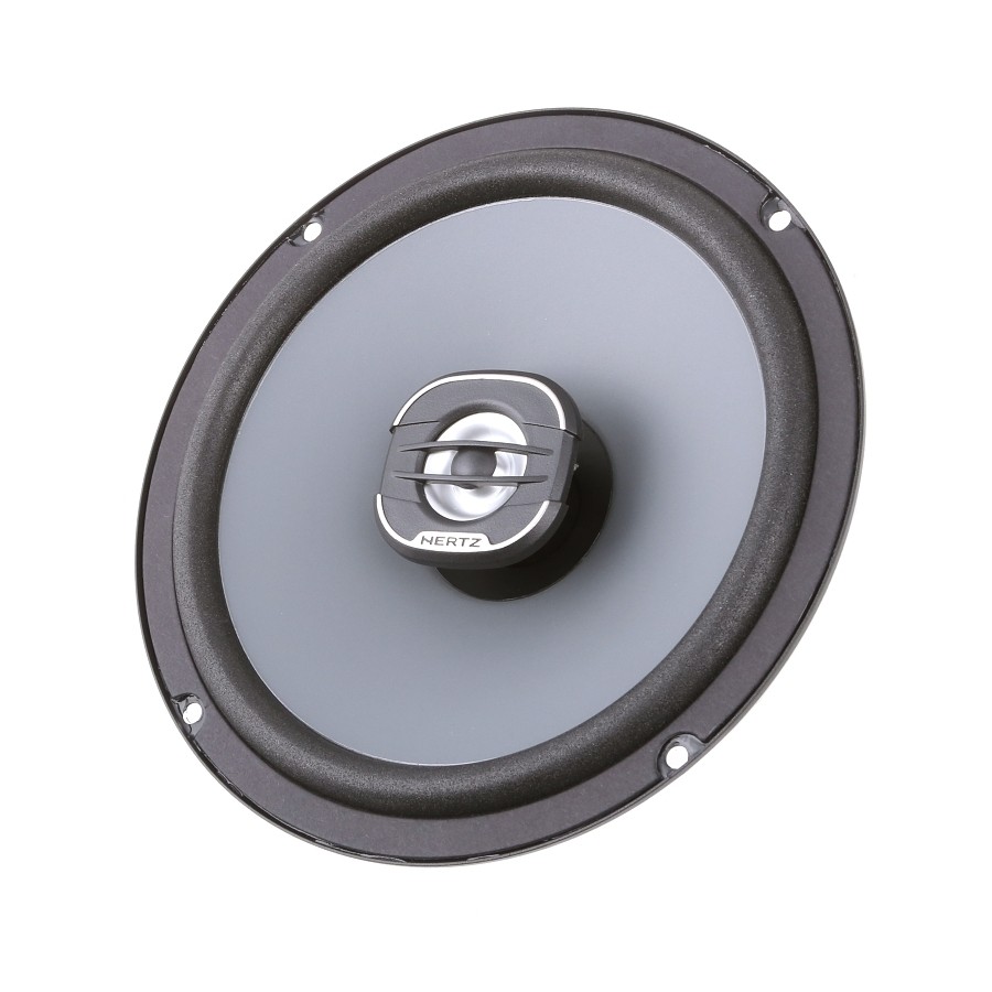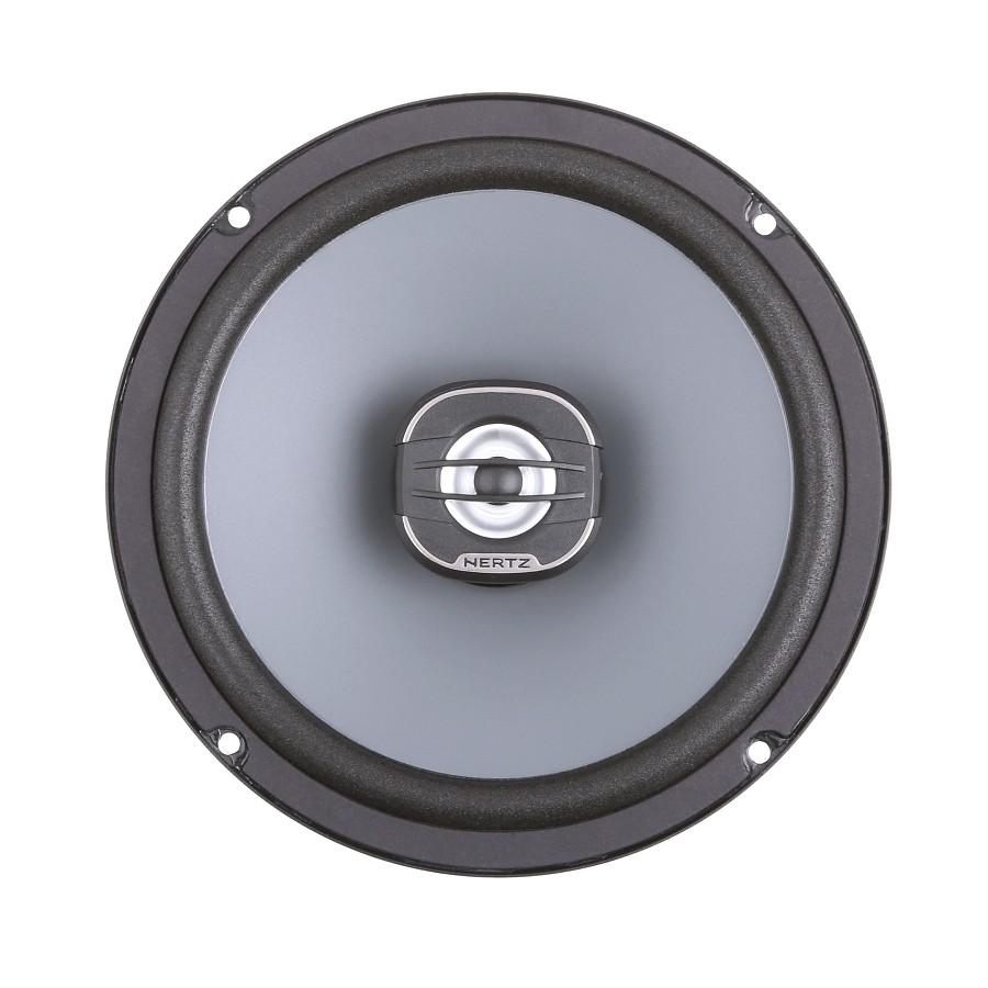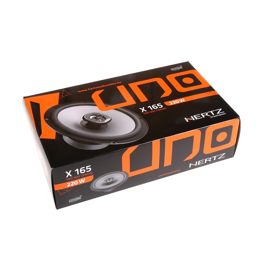 6,5" dvoupásmové koaxiální reproduktory Hertz X 165 jsou vybaveny speciálně navrženým čelním panelem výškového reproduktoru optimalizovaným pro vysoký výkon, který zajišťuje lineární frekvenční odezvu. Kmitací membrána z lisovaného papíru odpuzující vodu spolu s pěnovým závěsem poskytují velmi vysokou zatížitelnost a prodlouženou odezvu nízkých kmitočtů, aby se dosáhlo bohatého zvuku, i když jsou reproduktory napájeny jen ze samotného autorádia. 25 mm středobasová kmitací cívka poháněná feritovým magnetem s vysokou hustotou toku nabízí dynamický výkon a nezkreslený zvuk.