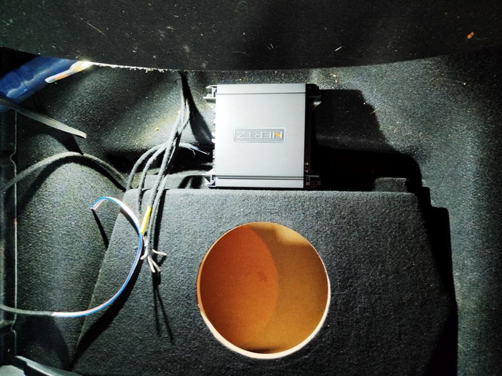 Zesilovač pro subwoofer byl zvolen Italský monoblok Hertz HCP 1D s funkcí automatického spínání po přijetí vysokoúrovnostního signálu, tedy signálu přímo ze zadních reproduktorů. Díky tomuto zapojení lze subwoofer ovládat pomocí nastavení "FADER" na originálním autorádiu a navíc se sám spíná v závislosti na hlavní jednotce.