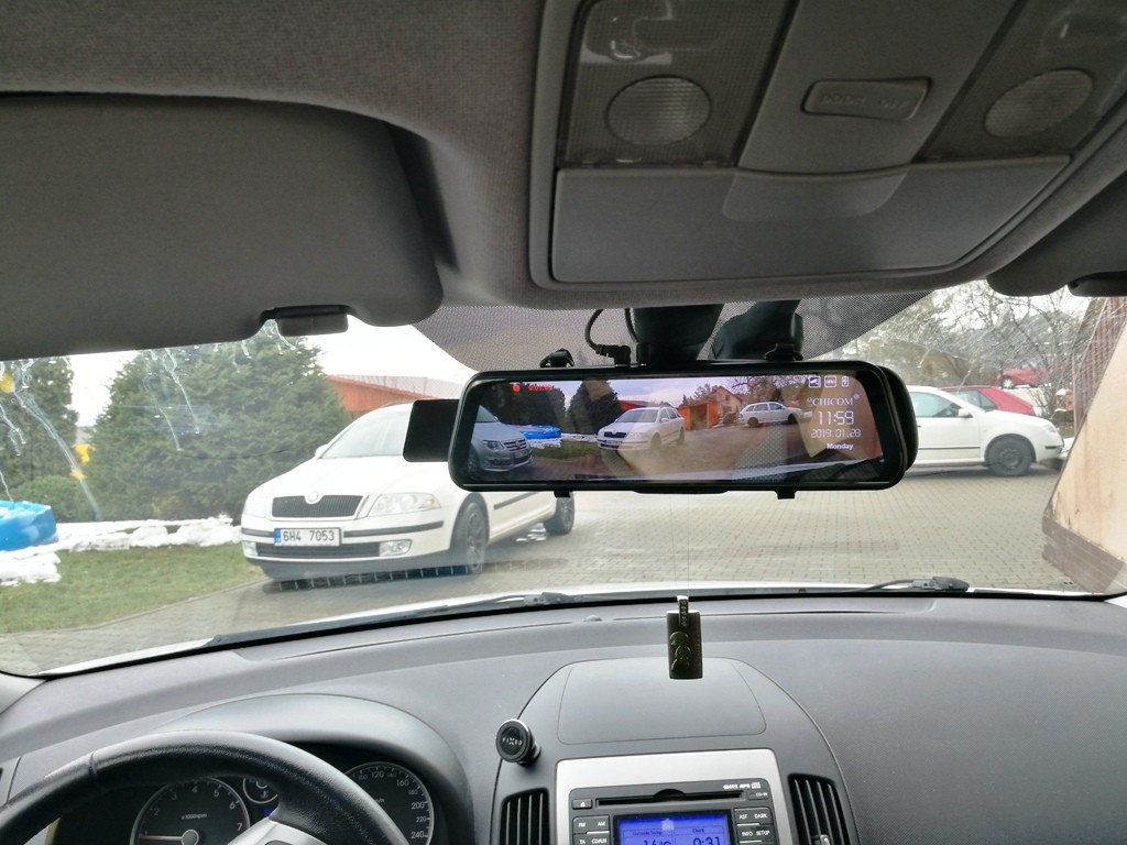 Máme za sebou instalaci přední monitorovací kamery ve zpětném zrcátku, které je zároveň monitorem pro zadní parkovací kameru. Tímto univerzálním systémem, který si zákazník dodal sám, jsme vybavili Hyundai i20. Obraz ze zadní kamery se aktivuje sám po zařazení zpátečky, přičemž přední monitorovací kamera se záznamem pracuje automaticky ihned po zapnutí klíčku.