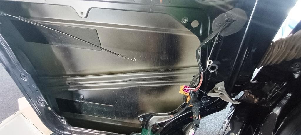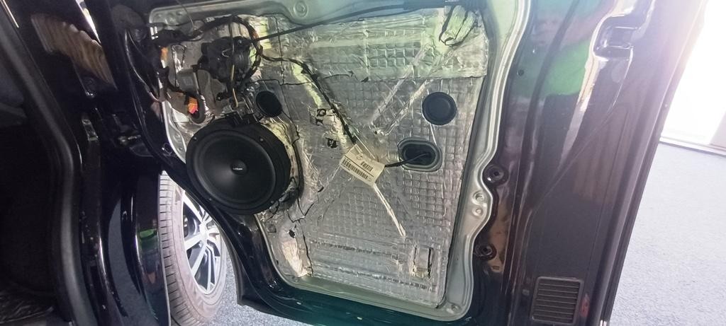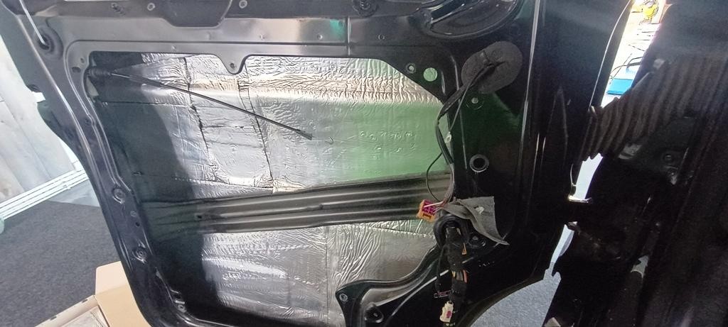 Současně jsme vytlumili přední dveře pomocí profesionálního materiálu CTK, čímž se snížily vibrace, zlepšila akustika a celkově se projevil plnější a přesnější zvuk. Výsledkem je komfortnější poslech s lepšími basy i detaily.