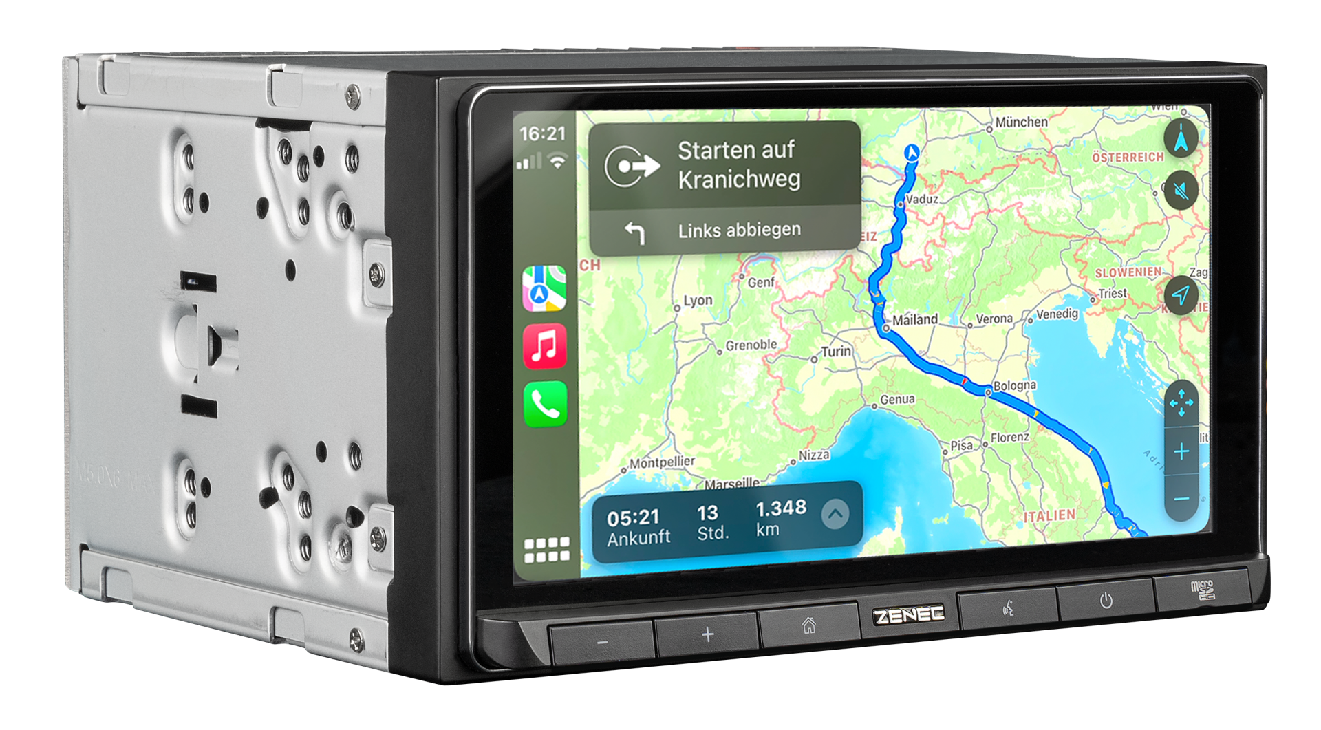 Z-N538 se zaměřuje především na snadné a bezpečné používání chytrých telefonů prostřednictvím bezdrátového Apple CarPlay a bezdrátového Google Android Auto™. Díky klasické koncepci ovládání s ikonami aplikací na displeji lze funkce a zdroje zařízení bezpečně ovládat během jízdy.